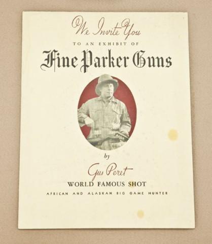 Two tin targets shot in portraits with printed on cardboard advertiser showing Gus Perot, who was an exhibition shooter and big-game hunter who did exhibitions for Parker and other gun companies in the 1920’s to 40’s era. The targets measure approx. 28” by 20”. Est: $750 - $1,500