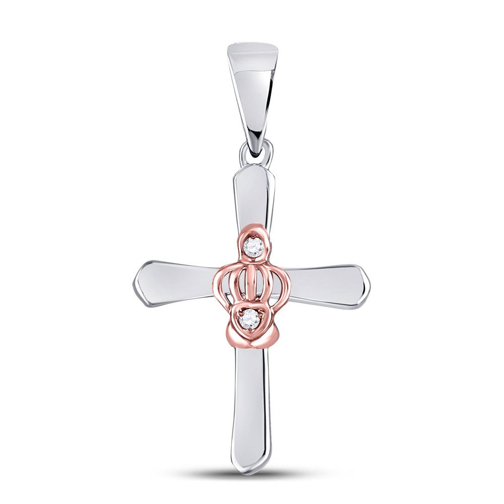 Two-tone Sterling Silver Womens Round Diamond Dainty Cross Pendant .02 Cttw