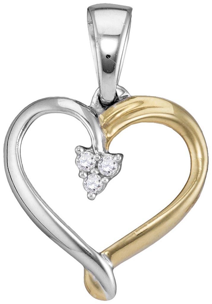 Two-tone Sterling Silver Womens Round Diamond Heart Clu **|**|** Two-tone Sterling Silver Womens Round Diamond Heart Cluster Pendant 1/20 Cttw