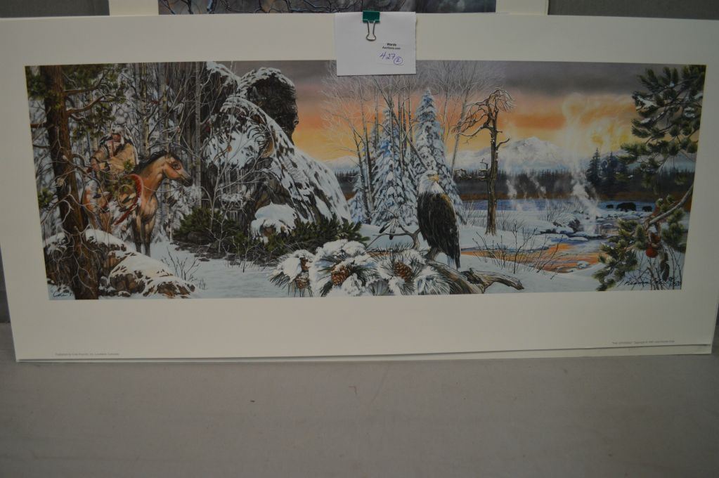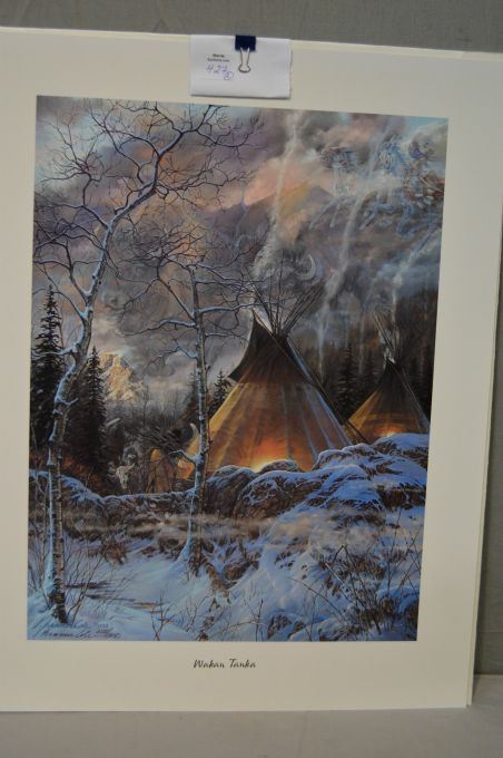 Two unframed limited edition prints including "Wakan Tanka" 605/1250 and "The Offering" 305/1500 both with original shipping folios, l COAs and hand signed by artist Julie Kramer Cole
