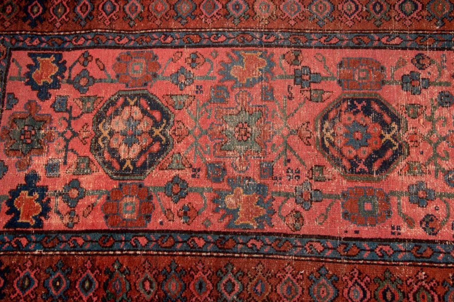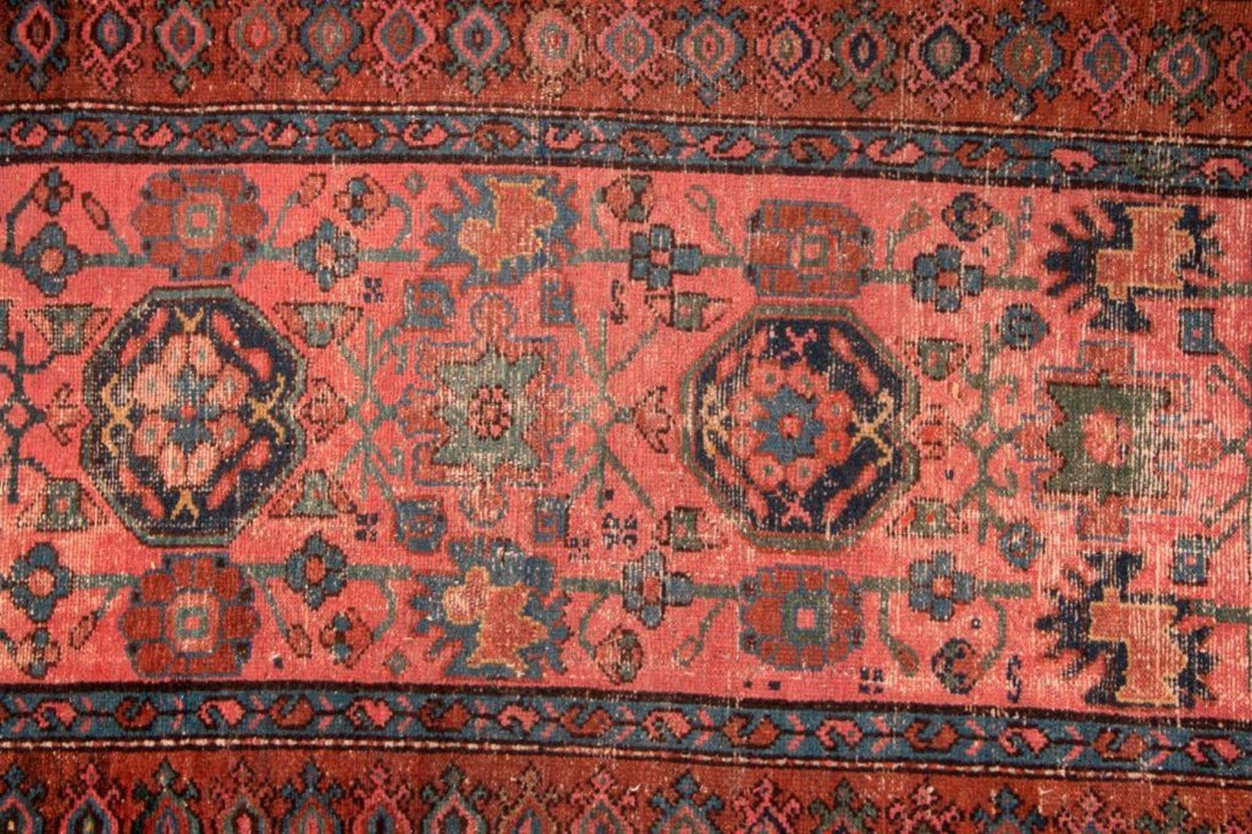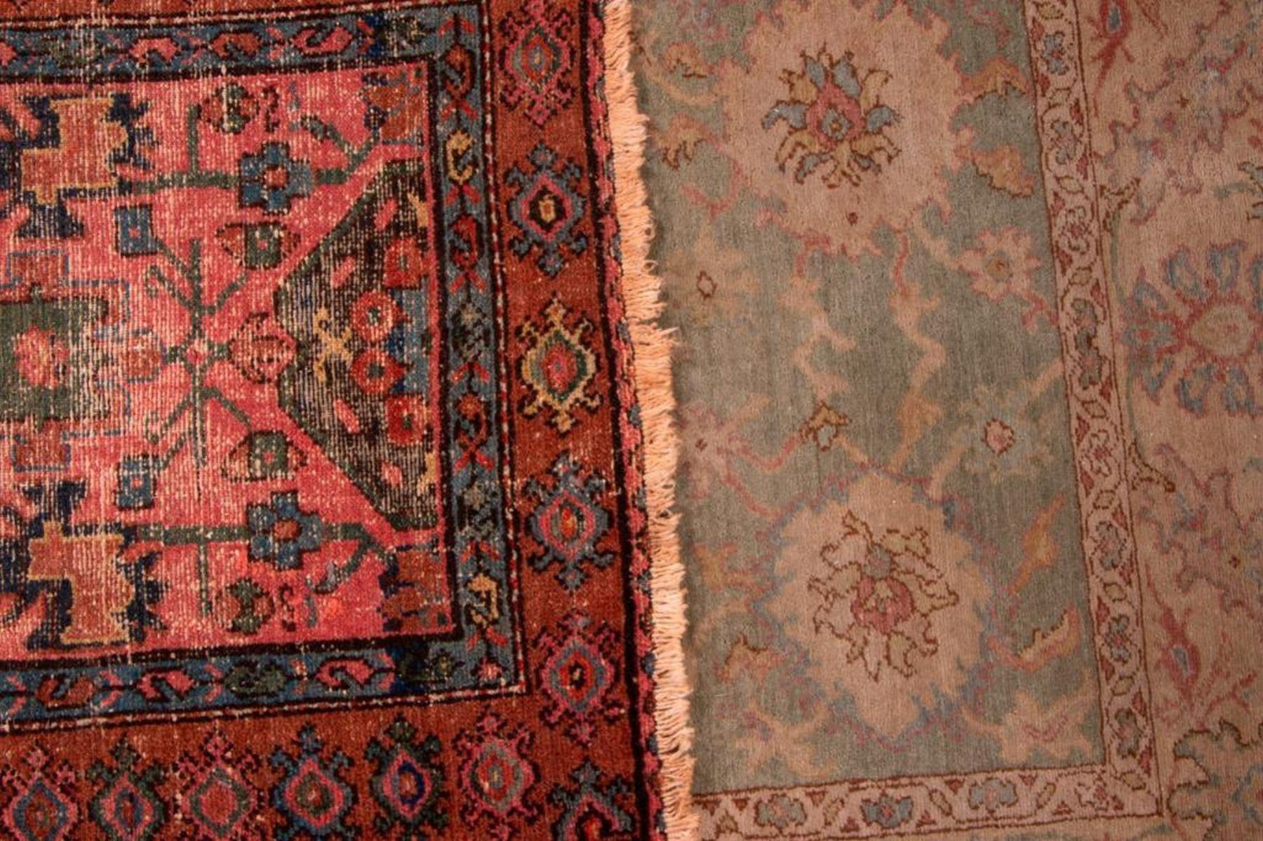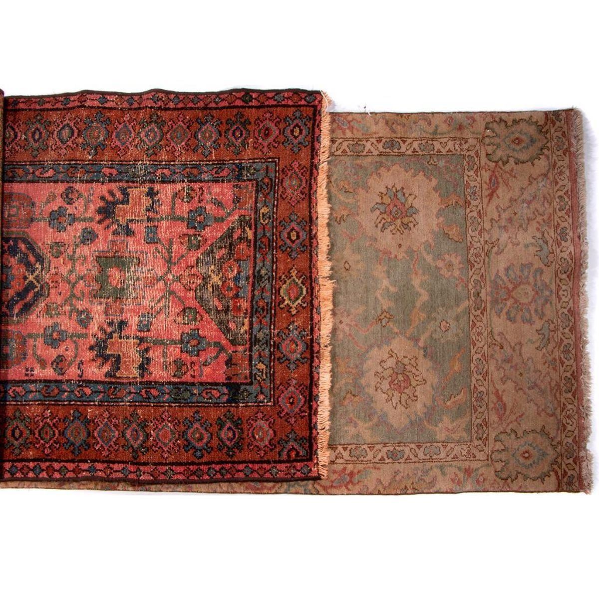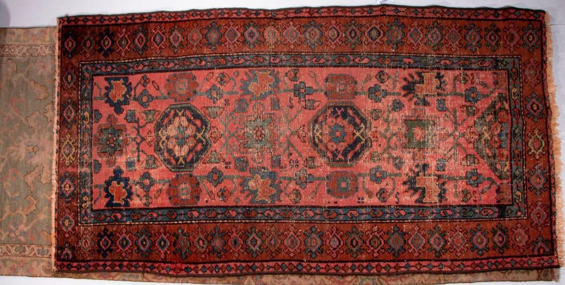A vintage runner with mat measuring 154 inches x 38. and a late 19th / early 20th century oriental rug measuring 74 inches x 39. Items are sold as is. Please inquire about condition if not otherwise stated.