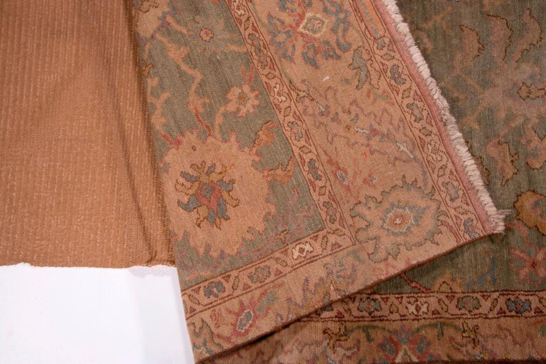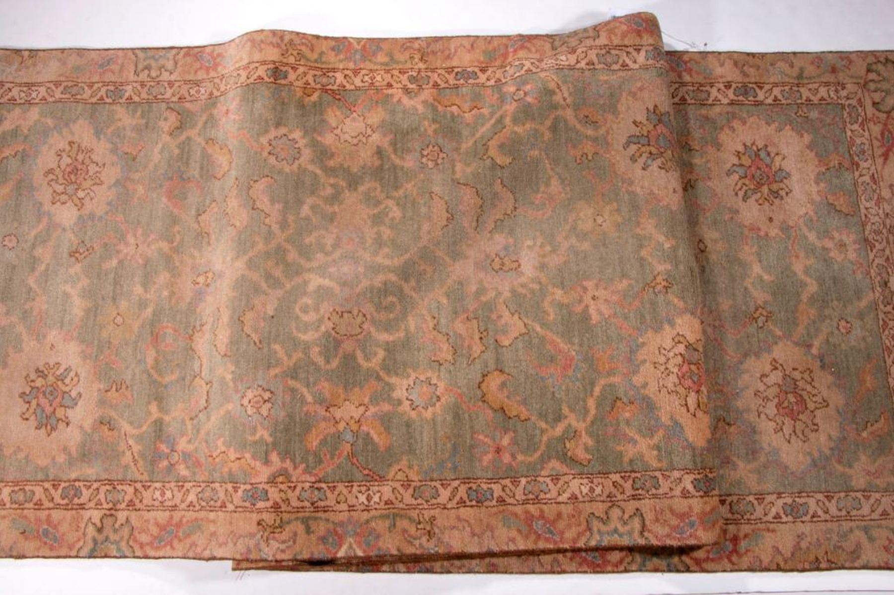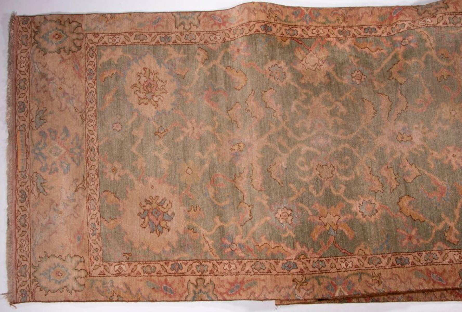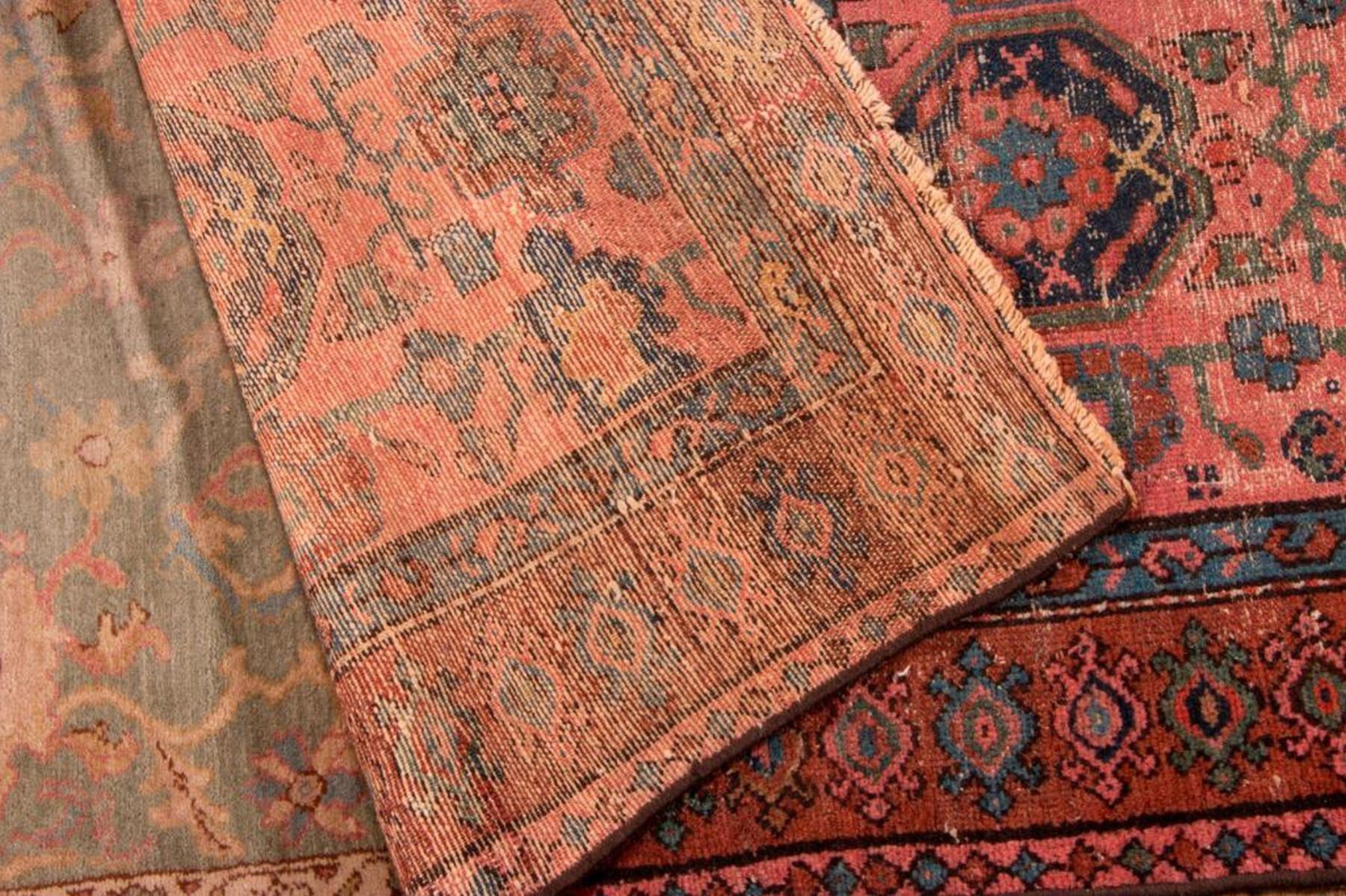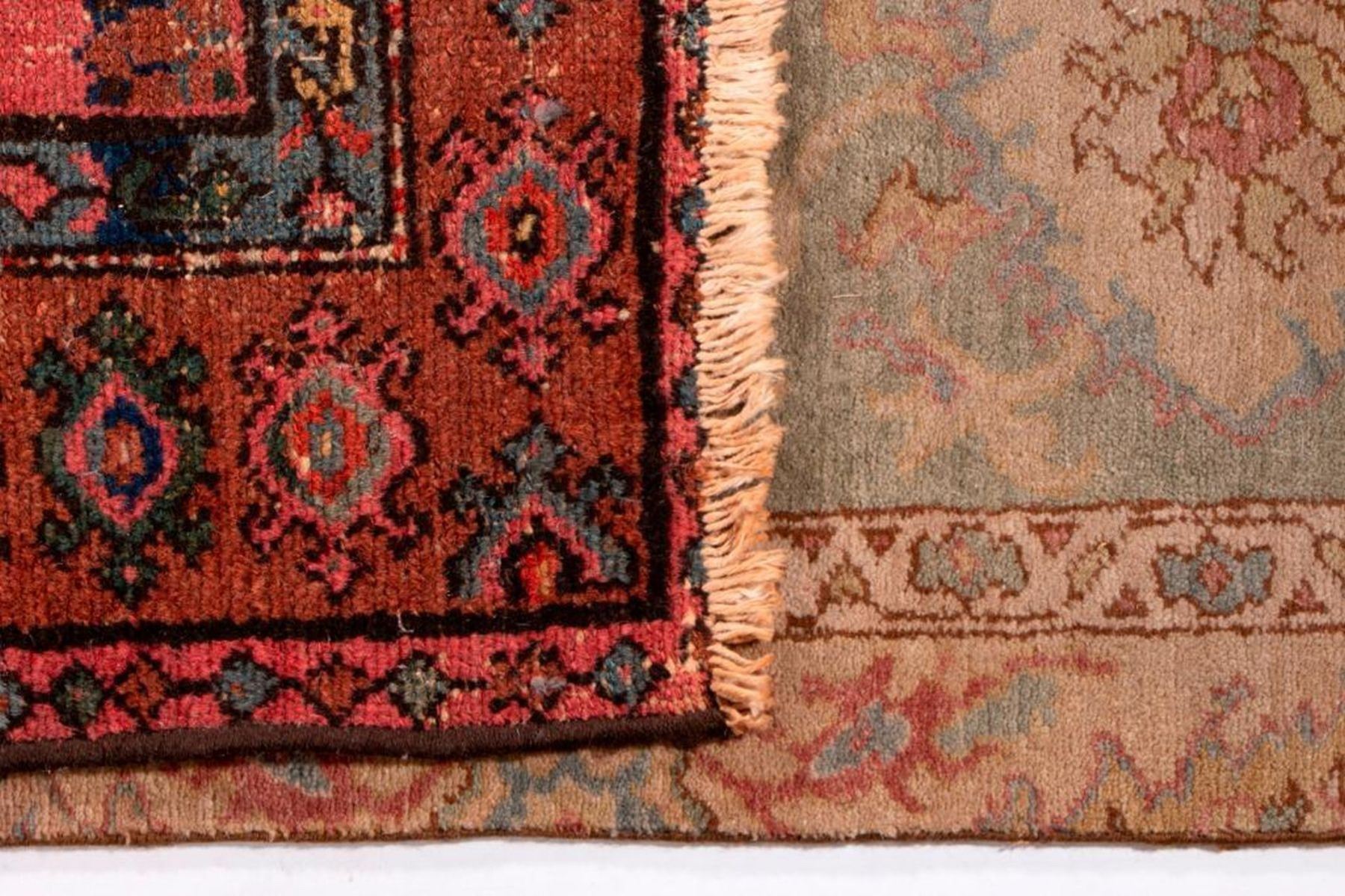 A vintage runner with mat measuring 154 inches x 38. and a late 19th / early 20th century oriental rug measuring 74 inches x 39. Items are sold as is. Please inquire about condition if not otherwise stated.