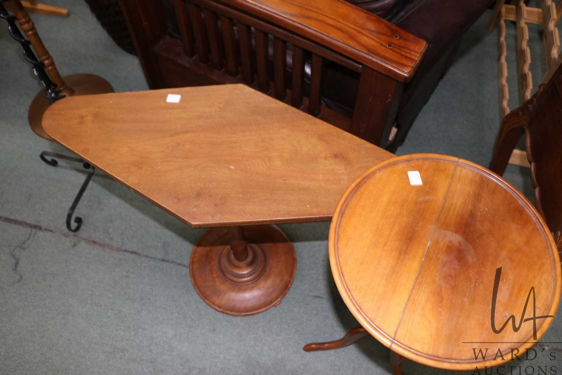 Two vintage center pedestal occasional tables including one 25" H X 13" D and a 22" H diamond shaped tilt top