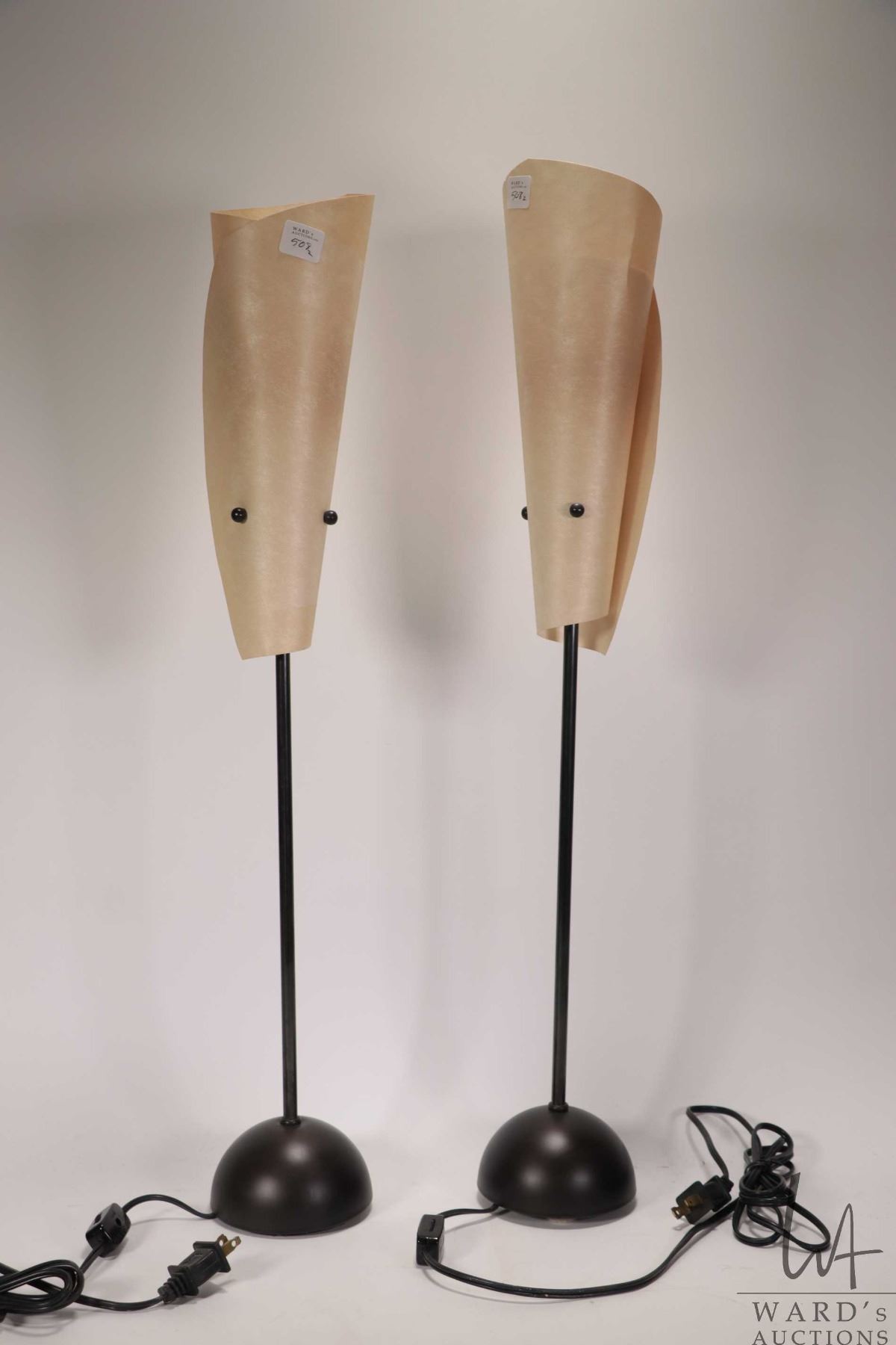 Two vintage lamps with vellum style shades, each 26" in height. Note: Not available for shipping. Local pickup only