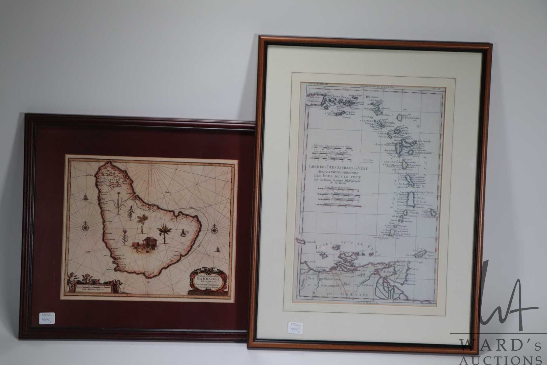 Two vintage map prints including historic island of Barbados and Caribbean Islands