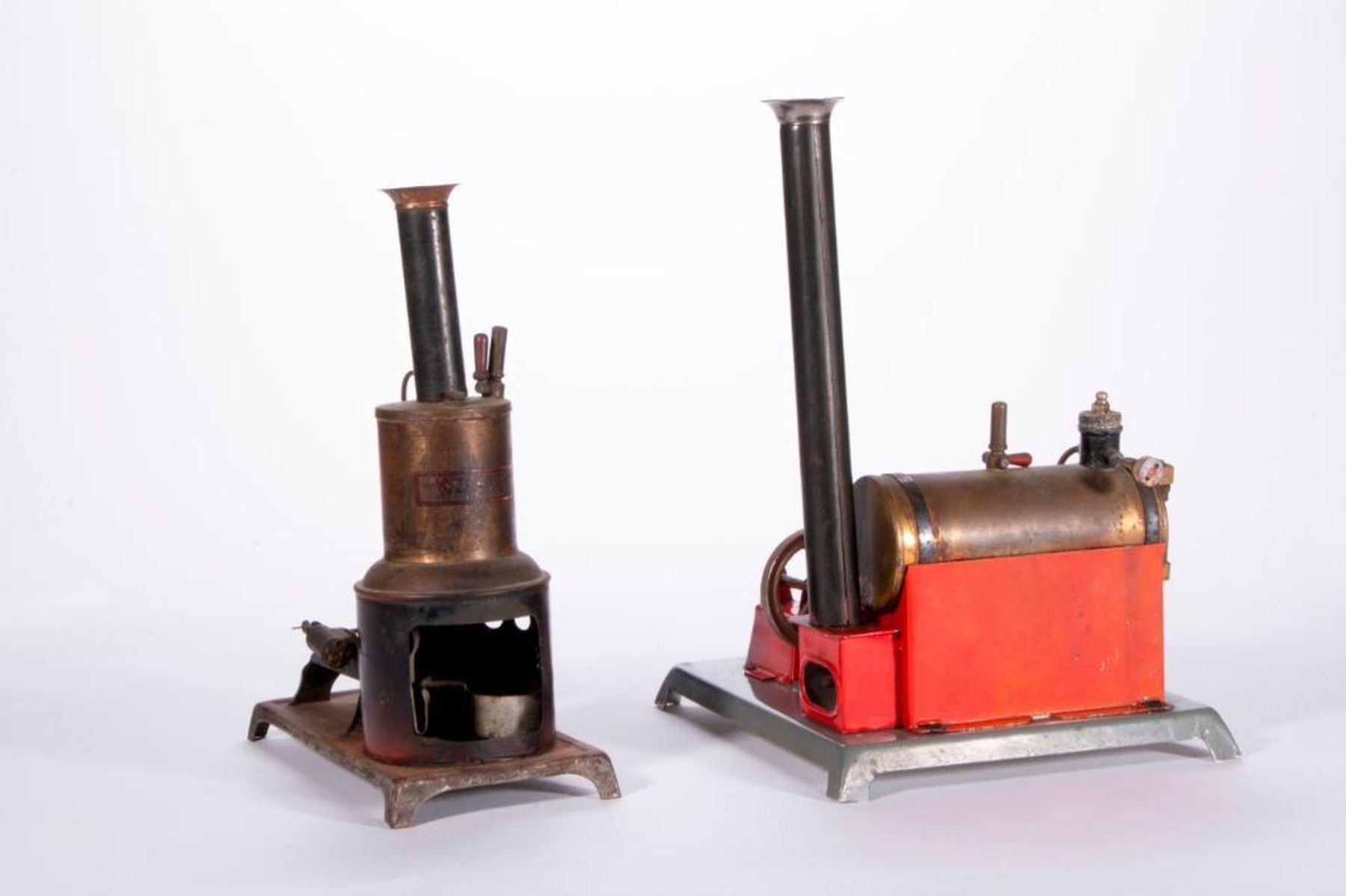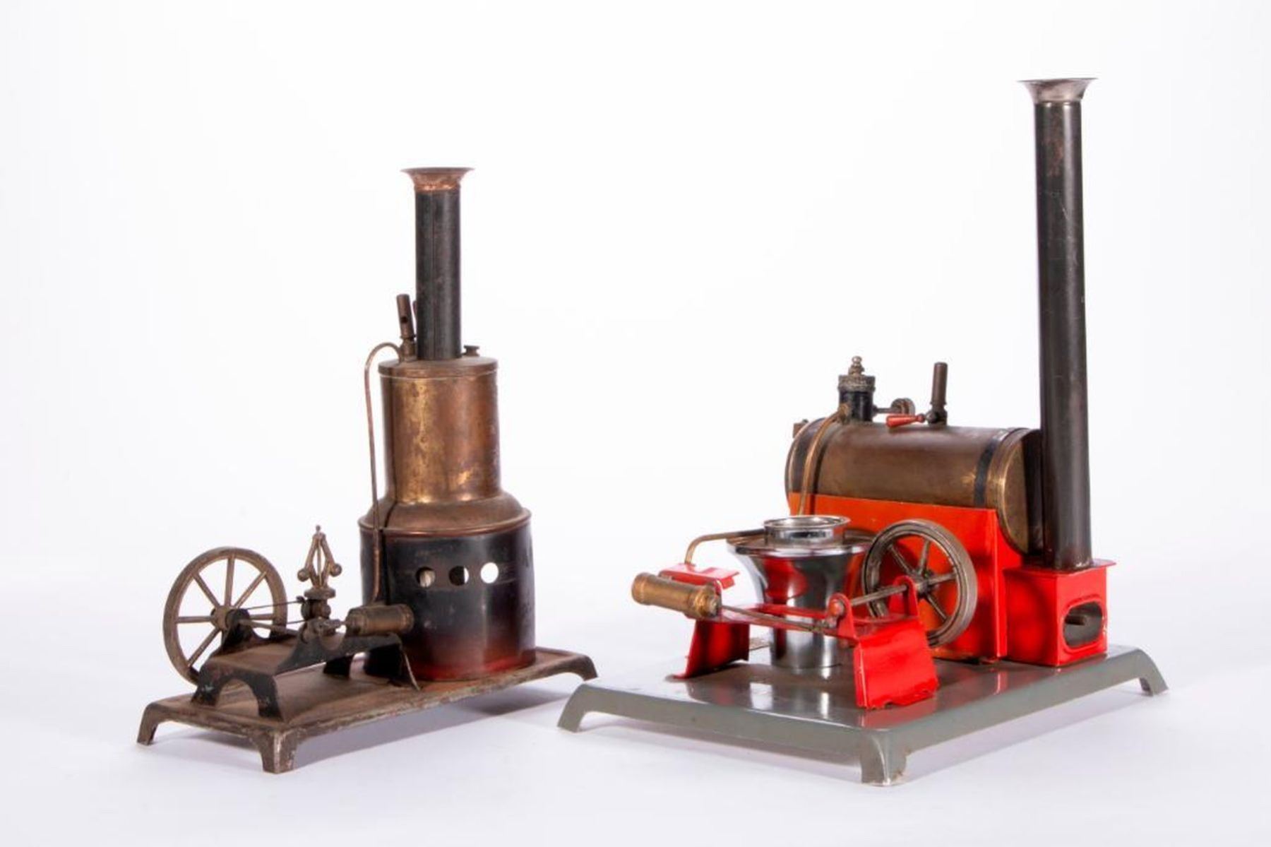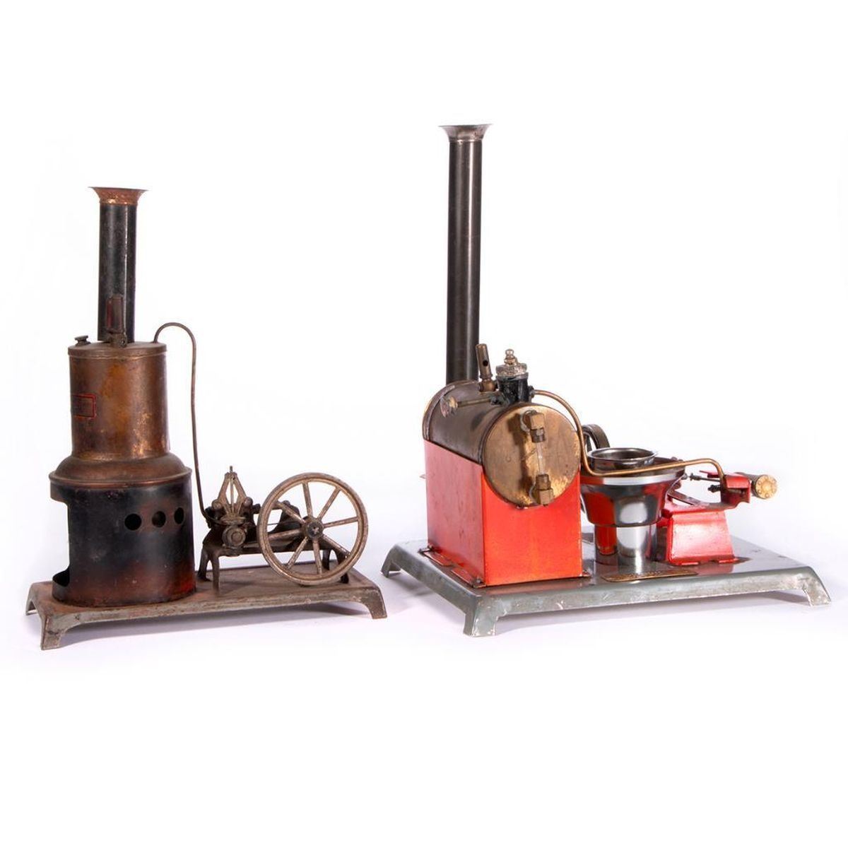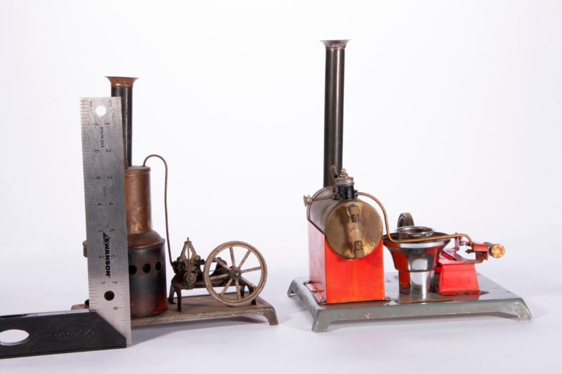 Two vintage model steam engines by Weeden MFG Co New Bedford, Mass. 11 1/2 inches high x 9 x 7 1/2 and 10 1/2 inches high x 8 x 4. As shown. Items are sold as is. Please inquire about condition if not otherwise stated.