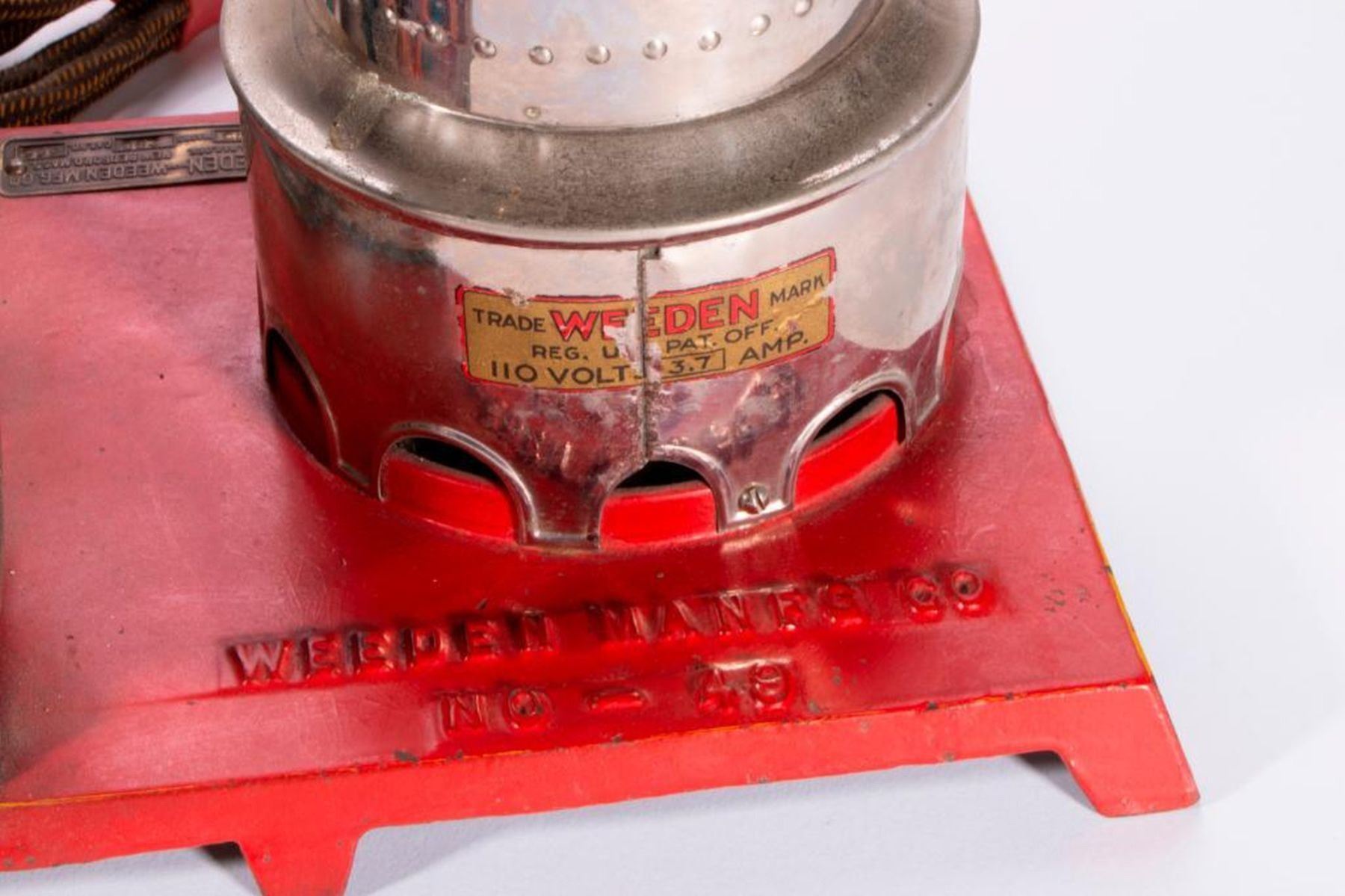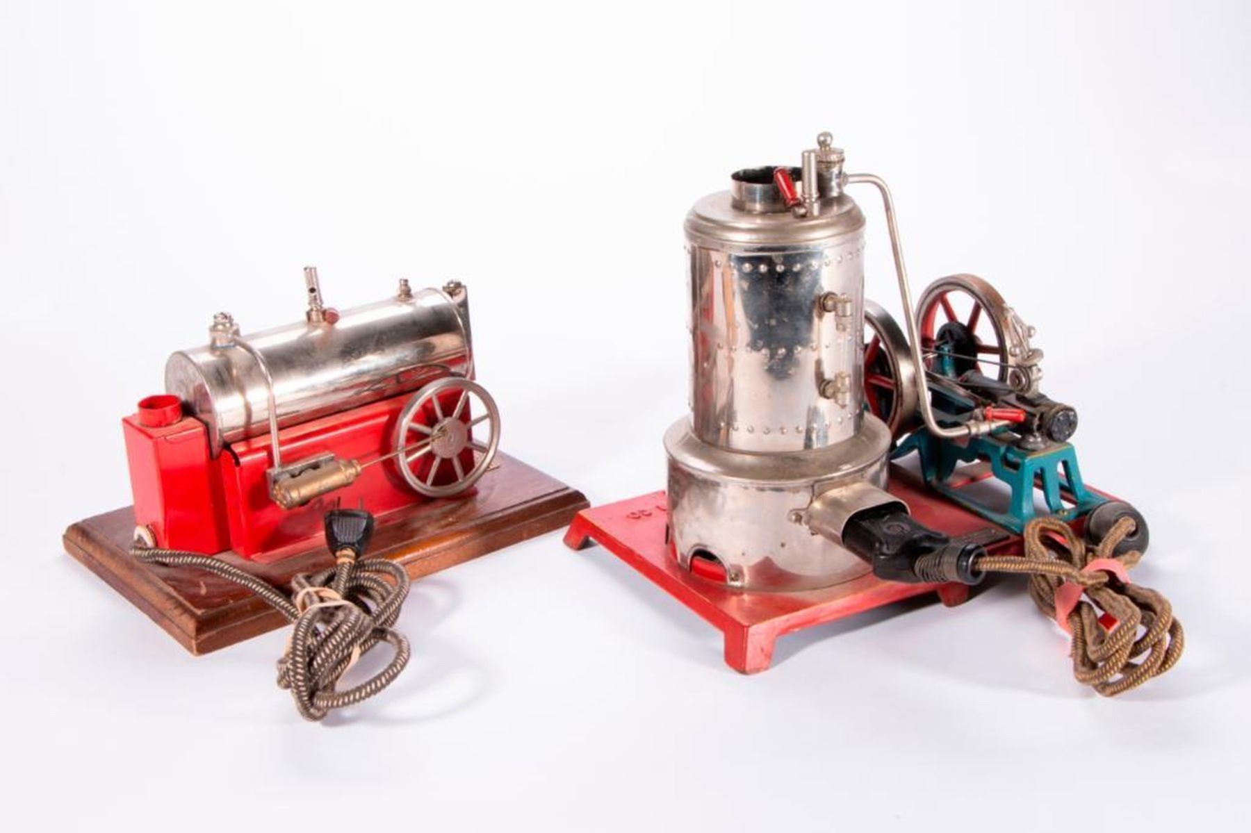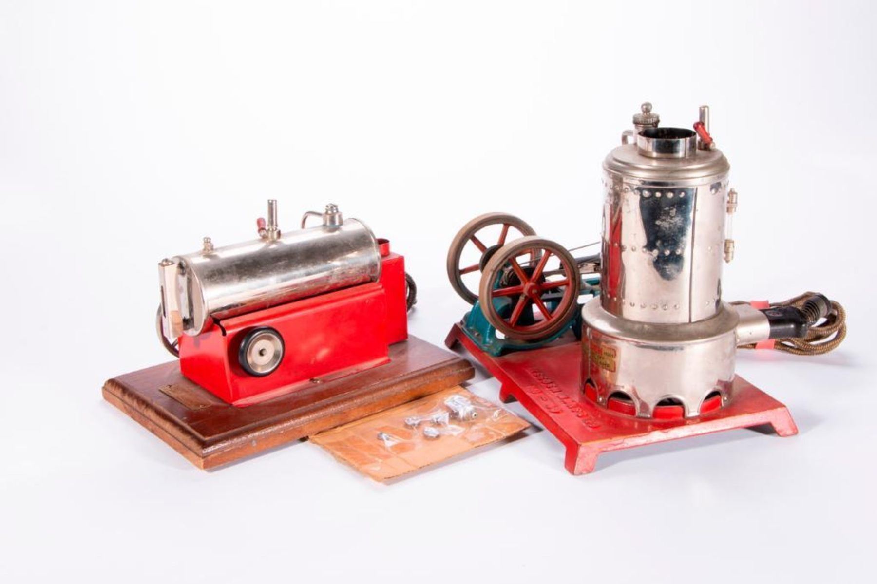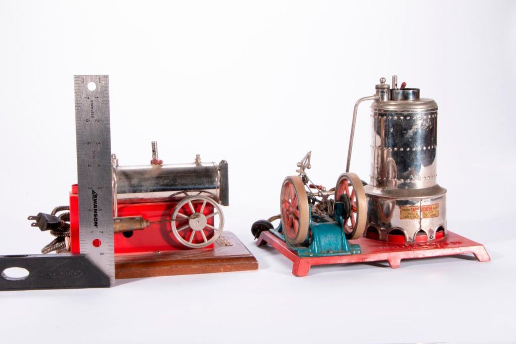Two vintage model steam engines marked Weeden MFG Co. New Bedford, Mass.(missing stacks). 9 inches high x 10 x 7 and 6 inches high x 9 1/2 x 6. As shown. Items are sold as is. Please inquire about condition if not otherwise stated.