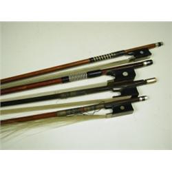 Two violin bows, one broken and the other marked Silvestre, Paris, and a cello bow, marked Germany, together with another bow, unmarked (4)