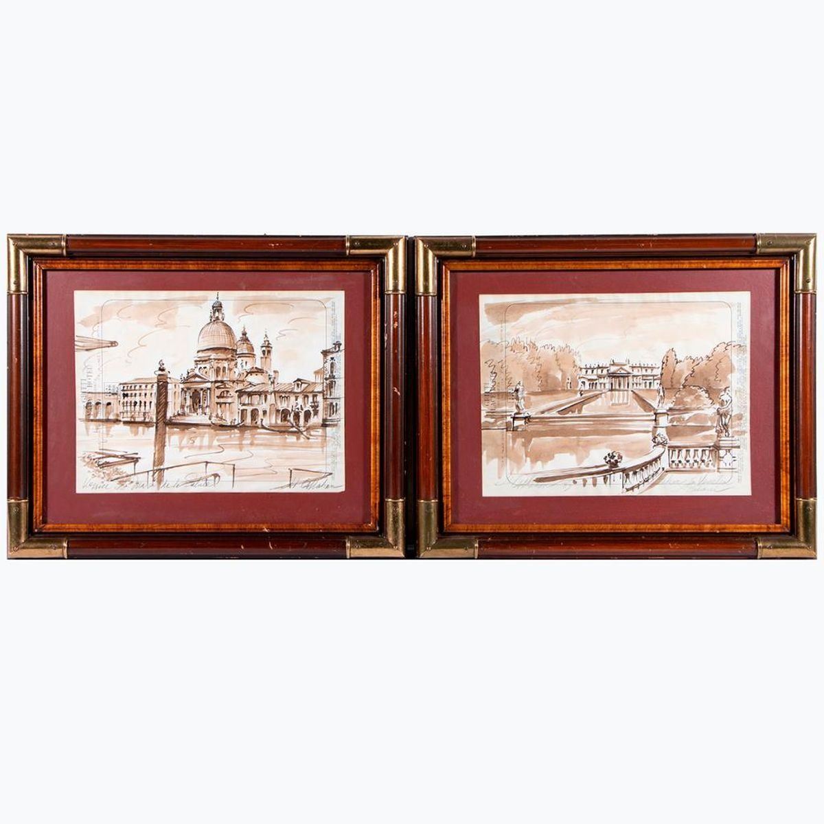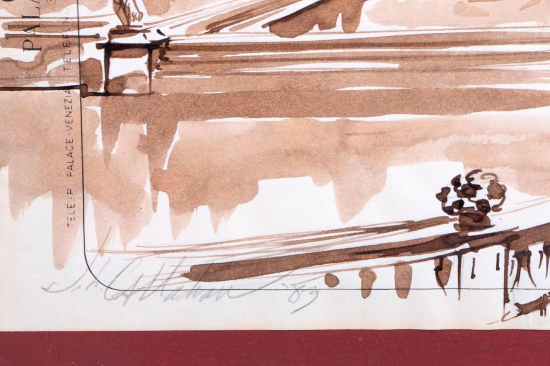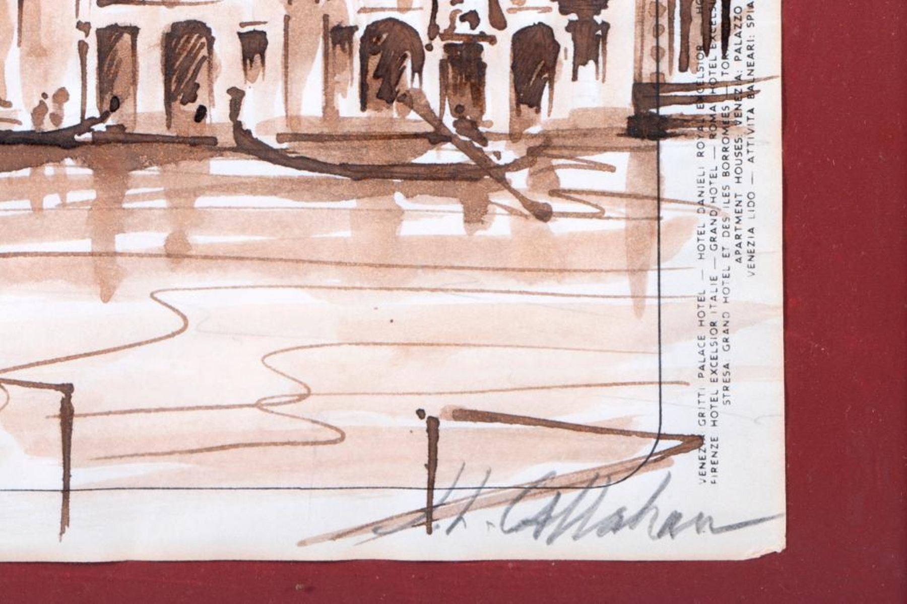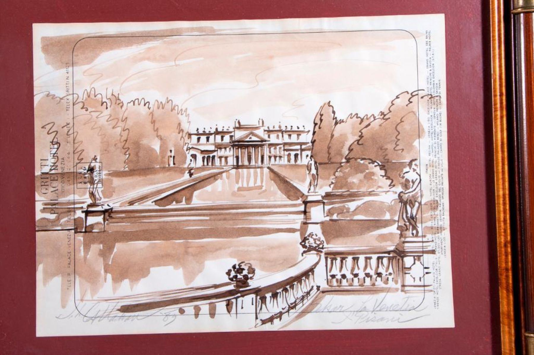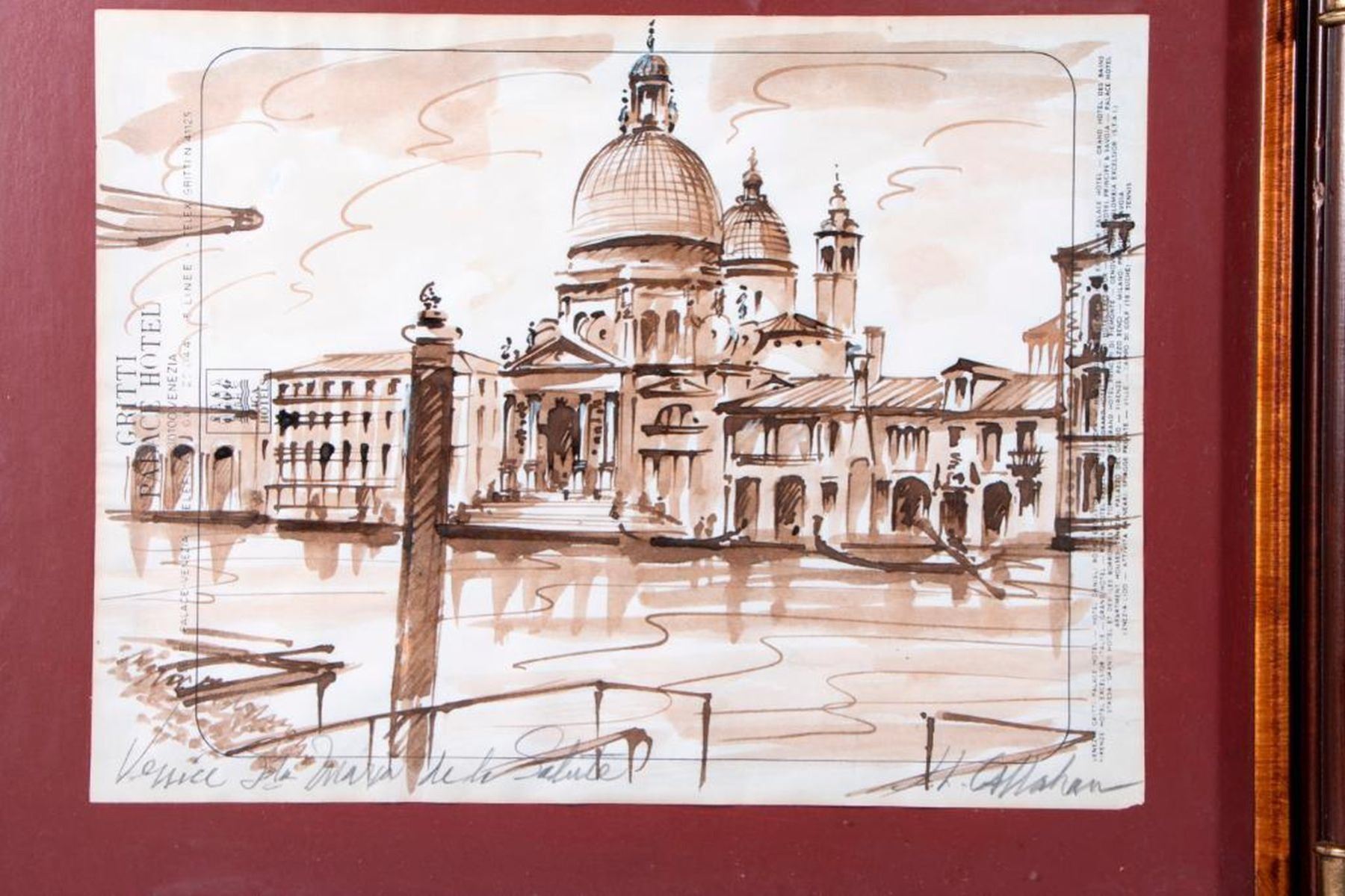 Two wash sketches of Venice on Gritti Palace Hotel stationary signed lower right: James L. Callahan.