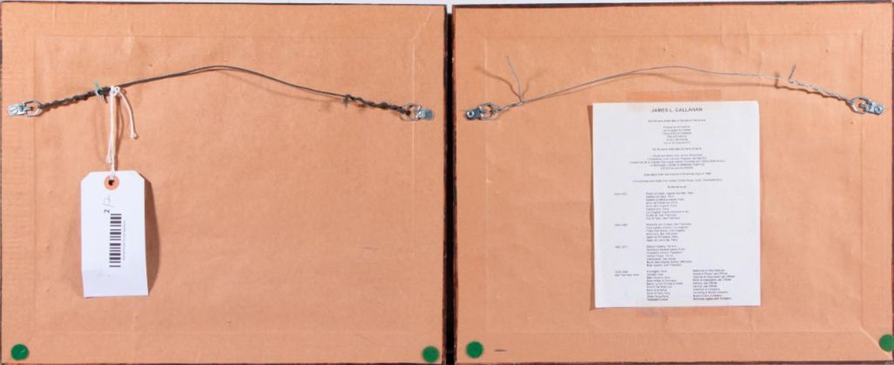 Frames: 13 ¾ inches high x 16 3/4. Images: 8 ½ inches high x 11. Artist Bio and exhibition list on reverse. Slight scuffing to one frame.