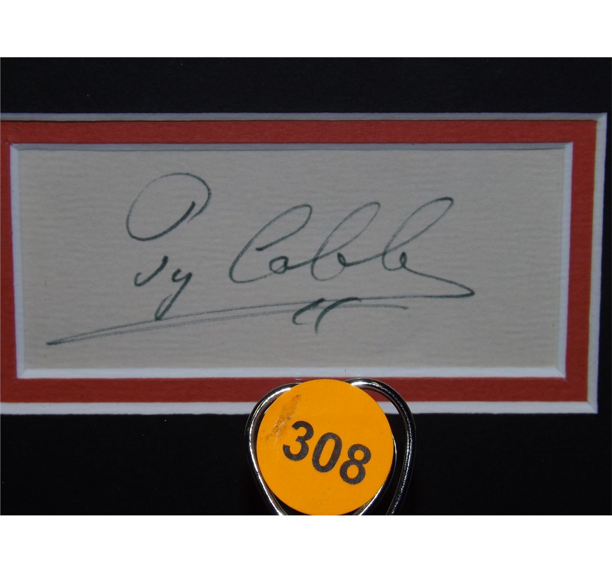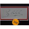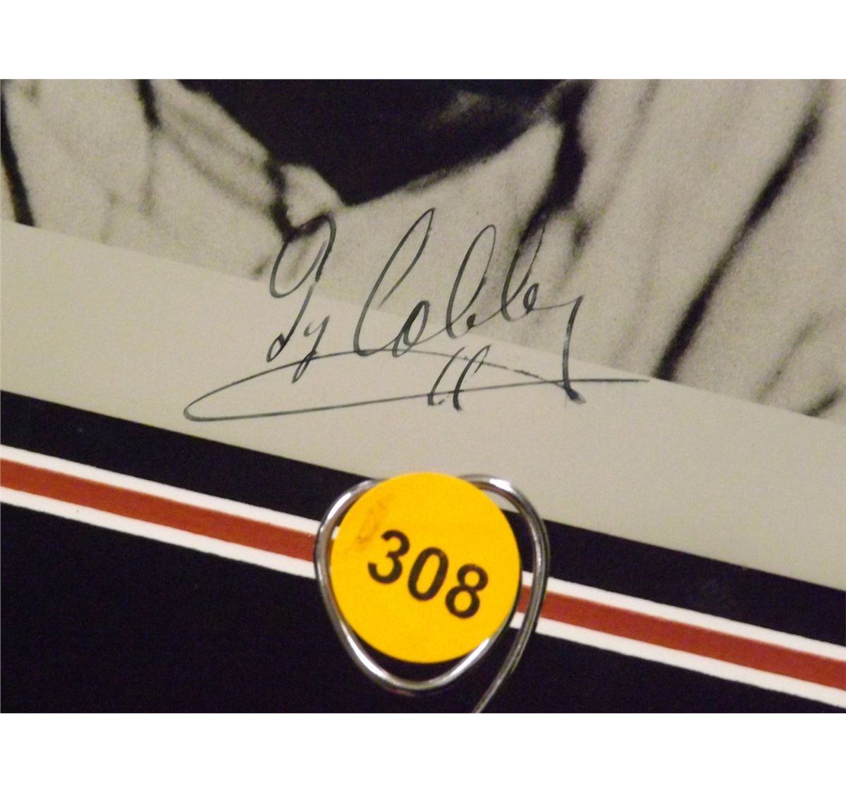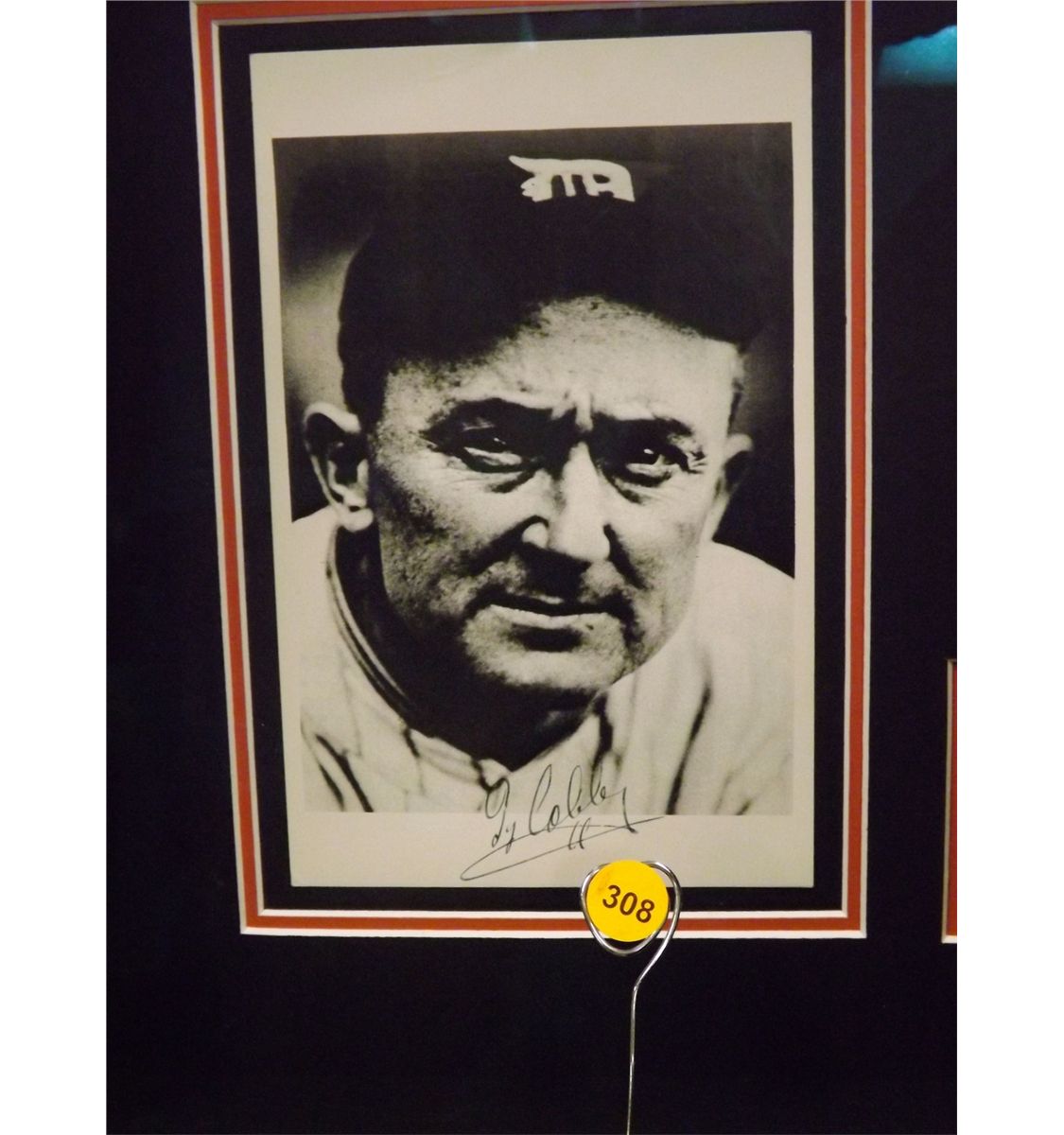 Ty Cobb Display. Framed Shadowbox with Autographed Ball, Photo and Die-Cut Signature, along with Sta