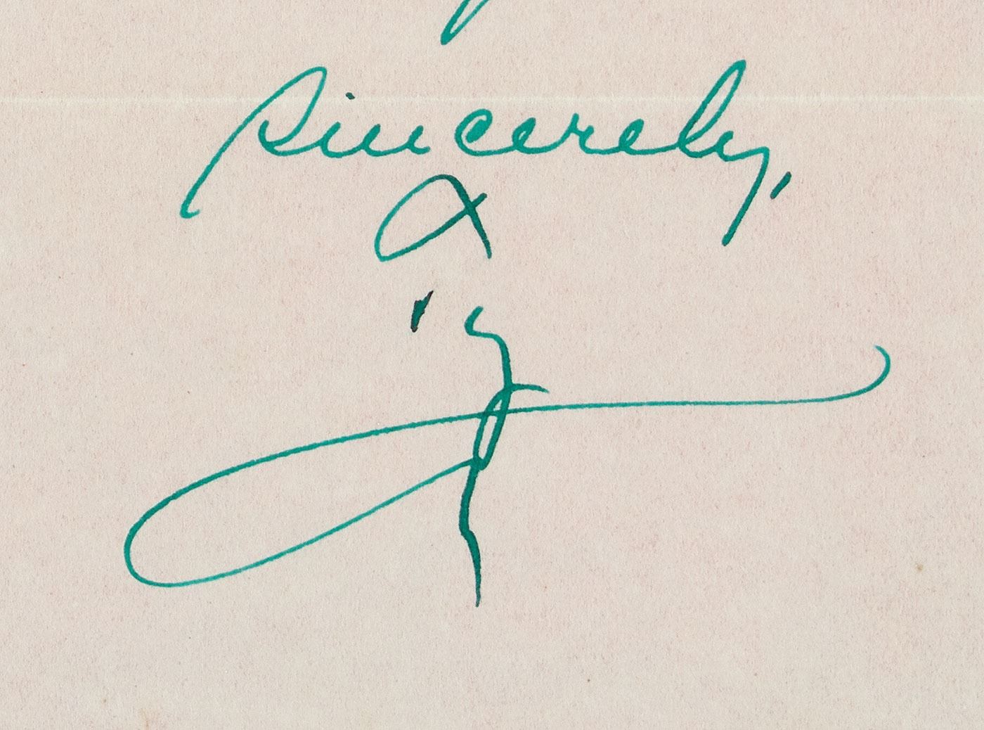 All lots sold by RR Auction are accompanied by an Auction Certificate ("AC”). On any lot presented with an AC issued by RR Auction, the certification is only as to its attribution to the person or entity described or to the lot's usage and only as explicitly stated therein (the "Certification of Authenticity”), to the exclusion of any other warranties, express or implied, including but not limited to those pursuant to the Uniform Commercial Code. The Certification of Authenticity inures only to the original Bidder (as shown in RR Auction's records). Bidder may not transfer, assign, or otherwise convey the Certification of Authenticity, and such purported transfer, assignment, or conveyance shall be null and void. The Certification of Authenticity is valid from date of the Auction in which Bidder was awarded the lot (the "Auction Date”) until five (5) years after the Auction Date, without exception.