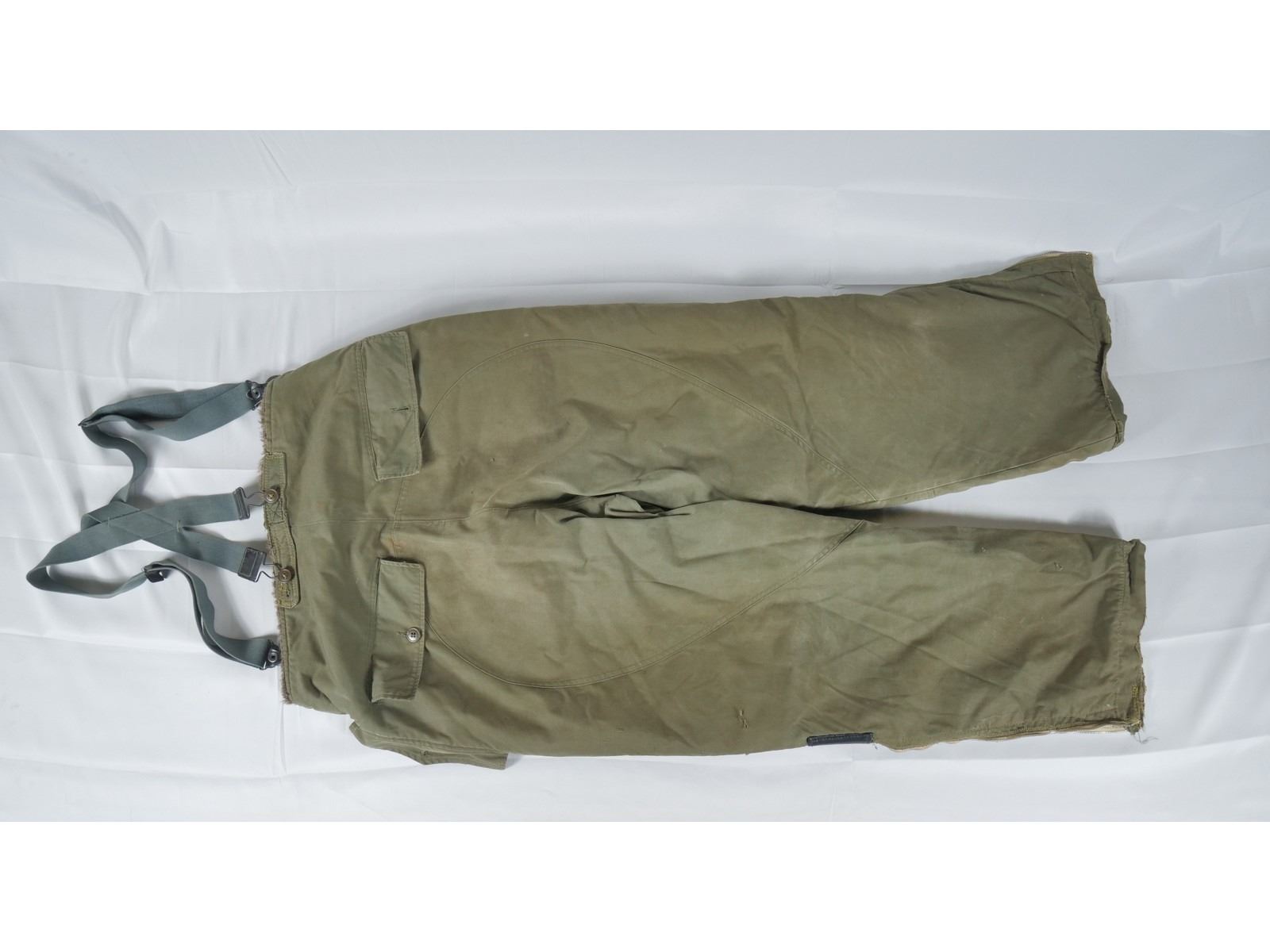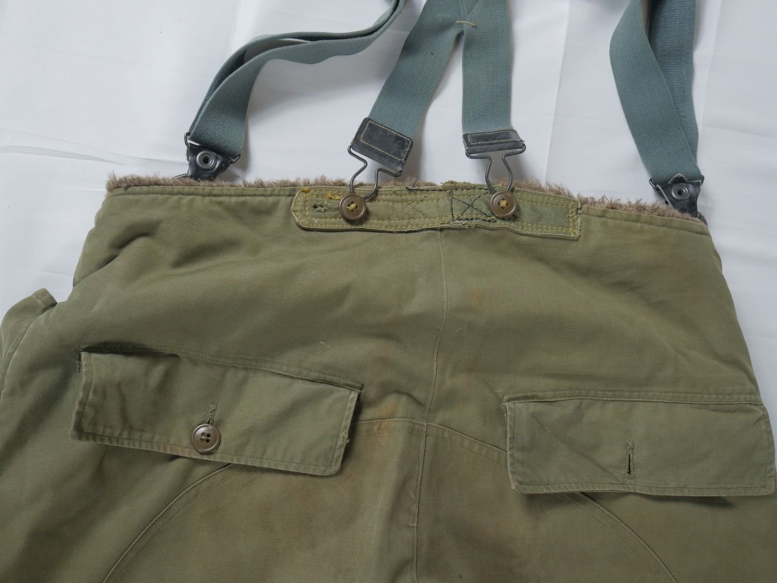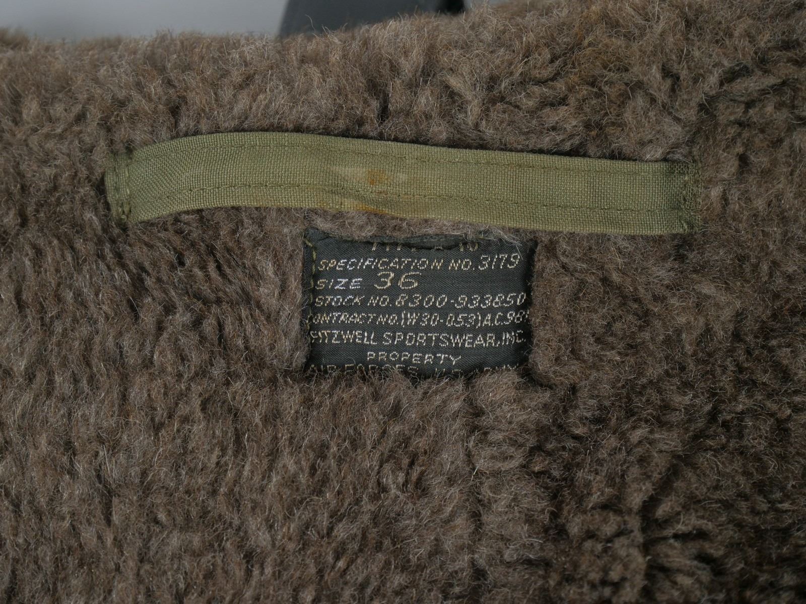 Good condition. Has suspenders. Army Air Force logo is faint but still visible. Lining is in very good condition and original tag is clear and legible. Made by Fitzwell Sportswear Inc.Size 36.