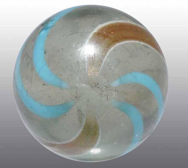 Description Original surface with alternating sky blue bands with nice, wide bands of Lutz. A few small hits. Condition (8.5). Size 1 - 3/4" Dia.