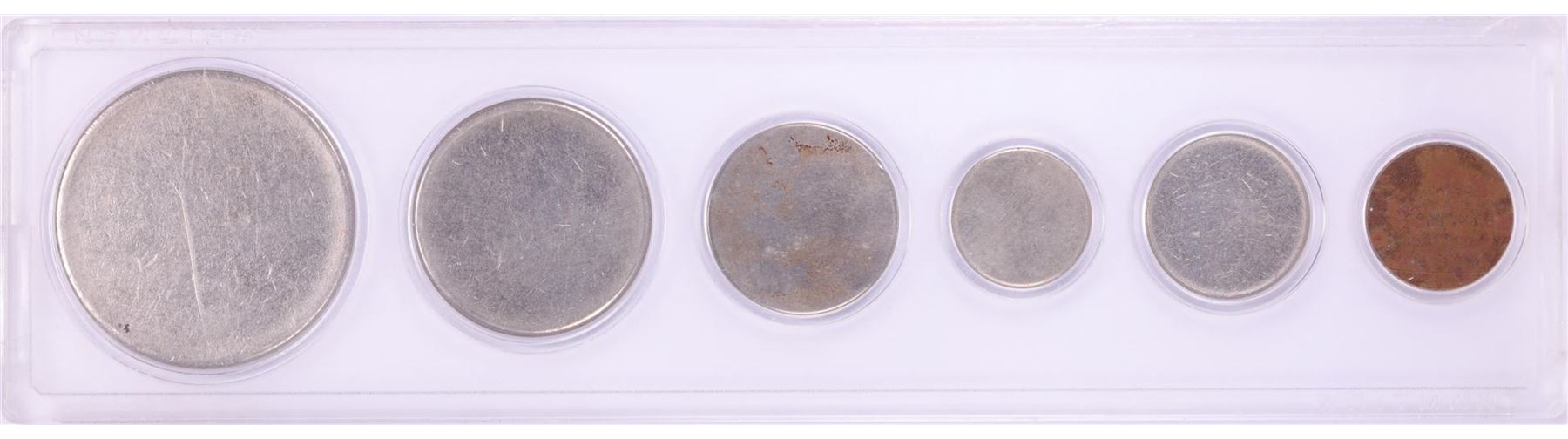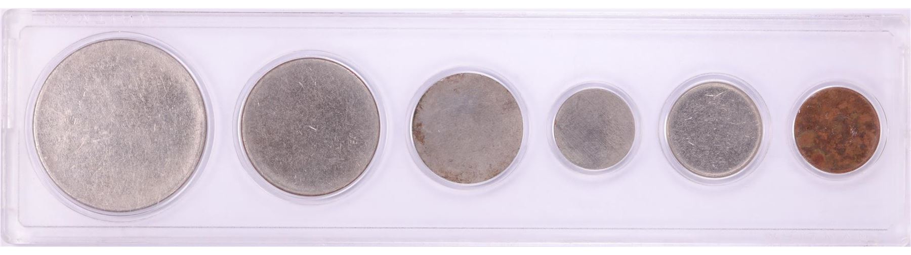 One Type Set of (6) Blank Planchet Coins in Holder.