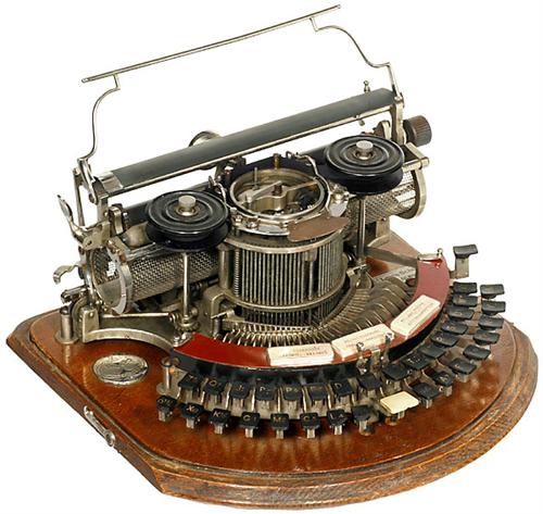 "Hammond No. 12", 1905 Amerikanische Typenschiffchen-Maschine mit rückwärtigem Hammeranschlag und runder Ideal-Tastatur. Mit Original-Koffer und 2 Typenschiffchen. - Literatur: Martin, 1949, S. 79.