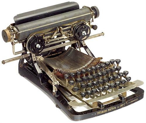 "Pittsburg Visible No. 9", 1902 Amerikanische Typenhebel-Schreibmaschine mit idealer Lösung des Konstruktionsproblems des "sichtbaren Schreibens". Mit zwei Hebeln kann die Tastatur mit allen Typenhebeln als Einheit ausgewechselt werden. Farbbandmuttern und Spulen ergänzt. - Literatur: Martin, 1949, S. 114. - Sehr interessantes, seltenes Sammlungsstück! - Nie zuvor in unseren Auktionen angeboten!