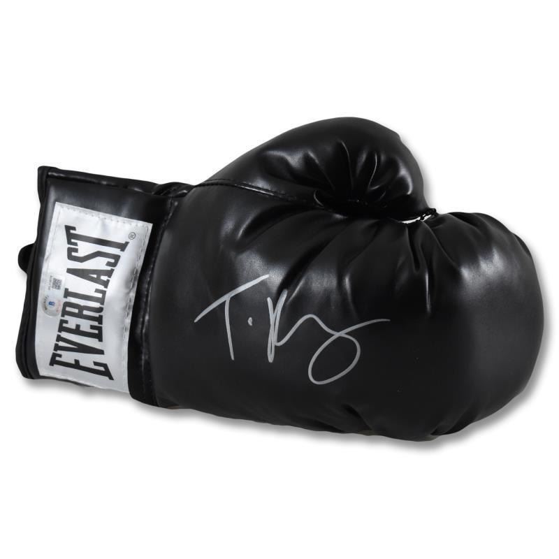 This is an Everlast professional bxing glove (Black), autographed by Heavy Weight Champion of the World, Tyson Fury. This piece is presented with a Certificate of Authenticity from Beckett with a QR code and certification number. Measures approx. 12" x 7" (glove).