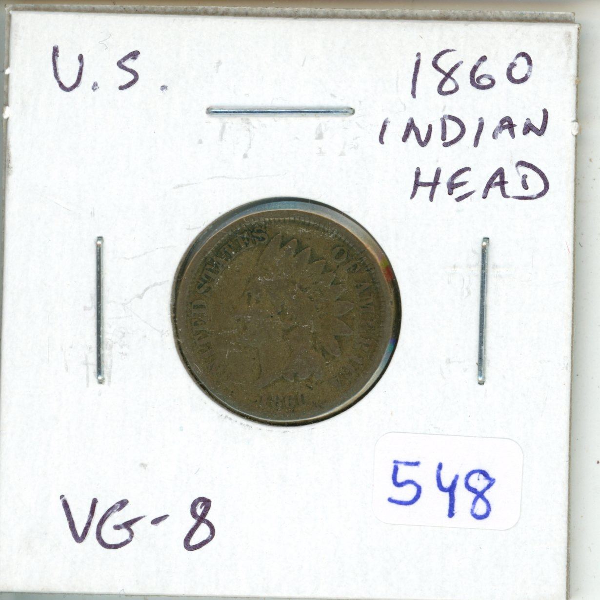 U.S. 1860 Indian Head Cent. First Indian Head Cent with Oak Wreath with Shield Reverse. VG-8.