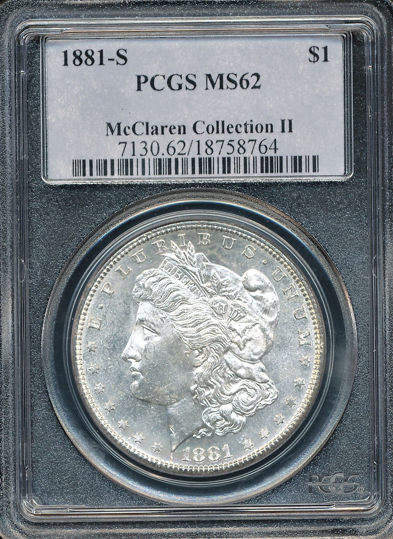 George T. Morgan’s design makes the Morgan Dollar the most popular of any Silver dollar design. This 1881-S Morgan Dollar has been graded and guaranteed by PCGS as being MS62.