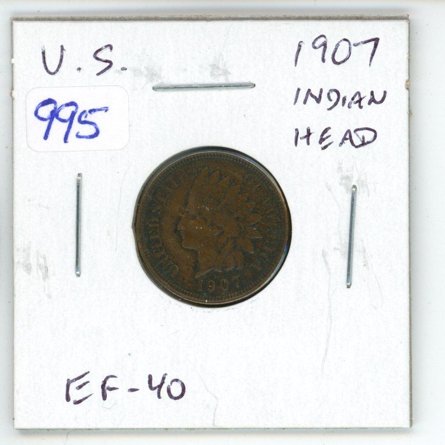 U.S. 1907 Indian Head Cent. EF-40. Nice.