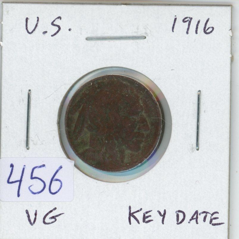 U.S. 1916 Buffalo Nickel 5 Cents. VG-8. Key Date.