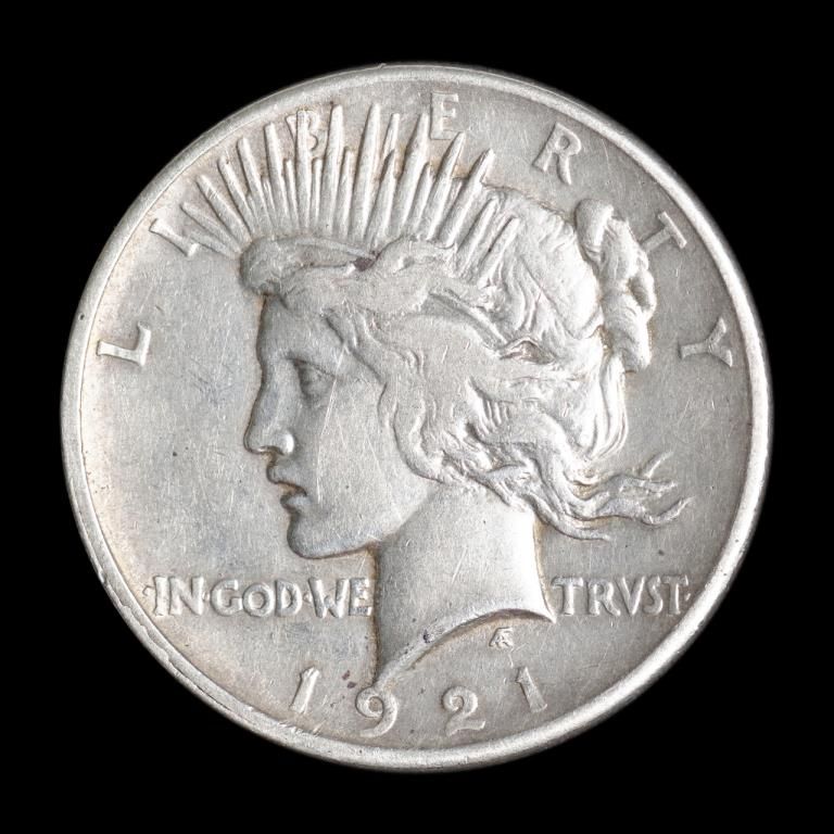 U.S. 1921 Peace Dollar, first year issue of series, ungraded. Est.: $55-$85.