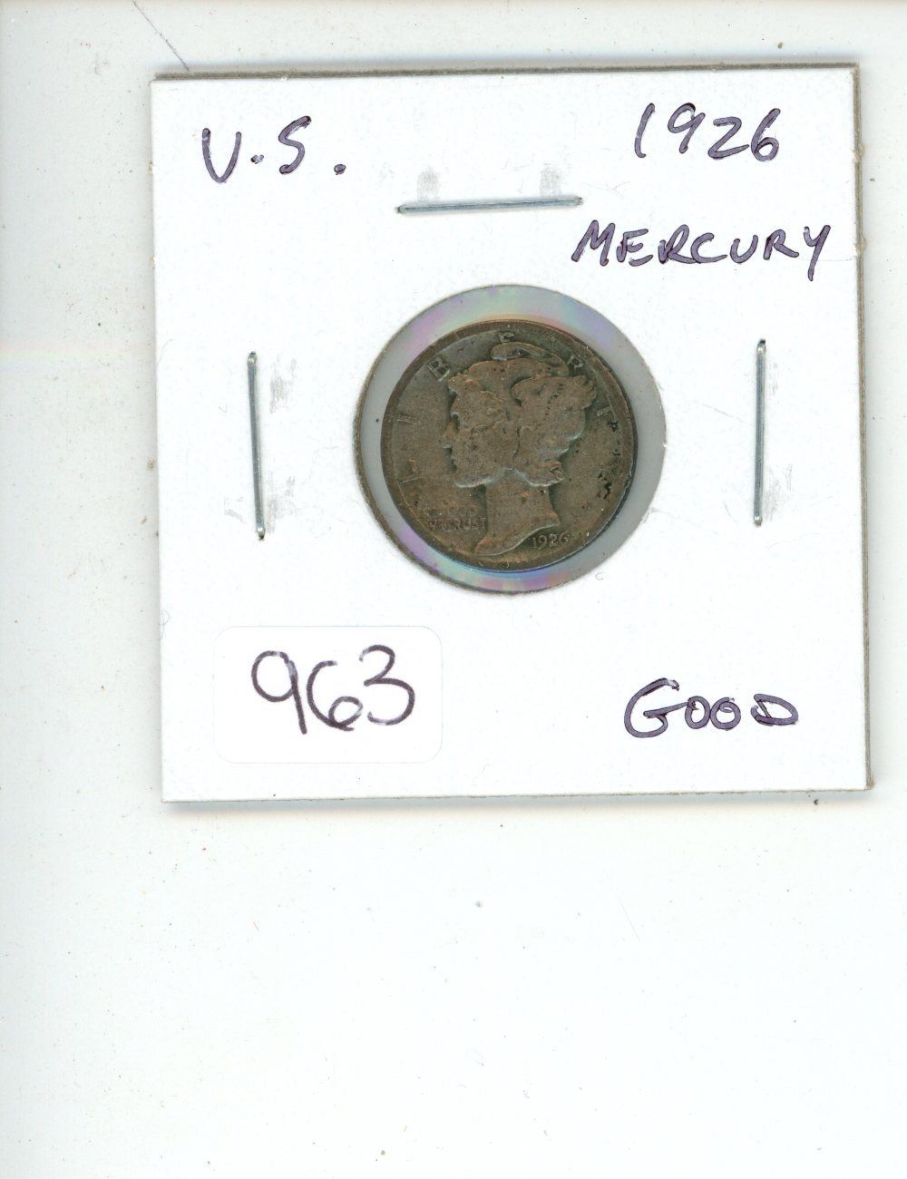 U.S. 1926 Mercury Silver Dime. Philadelphia Mint. Good.