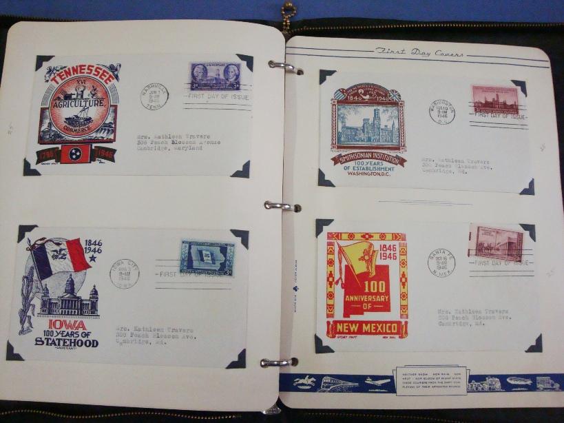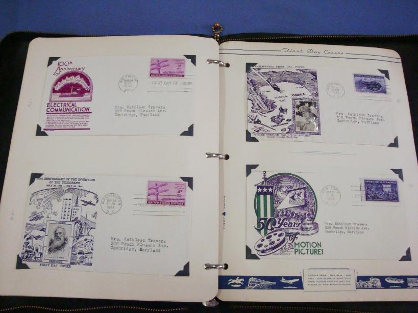 Very useful lot of approx. 150 U.S. first day covers from the mid 1930's to 1948 in two binders. One binder is a complete set of Famous Americans along with unused blocks of 4 and singles. The other is a nice selection of better cachets incl. Crosby, Cach