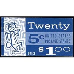 U.S. U.S. 1939 On 1963, 5¢ Blue (1213c) Slogan 2 phosphor variety, perforated 11x10-1/2 booklet panes of 5 with label (x4) in a complete unexploded booklet. Crisp white covers with blue printing ($1.00). VF panes. OG. NH. Scott No. BK114 US$300