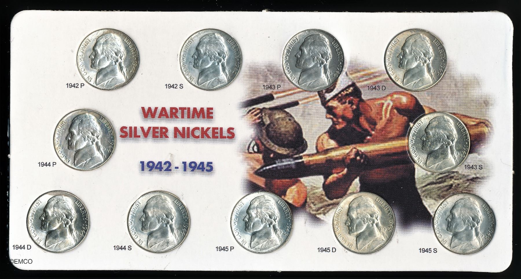 U.S. 1942 - 1945 Silver Wartime Nickels Complete Set! Please see photos to appreciate condition. 11 coins total.