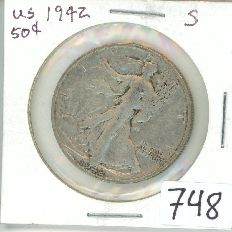 U.S. 1942S Walking Liberty Half Dollar. San Francisco Mint. F-12.
