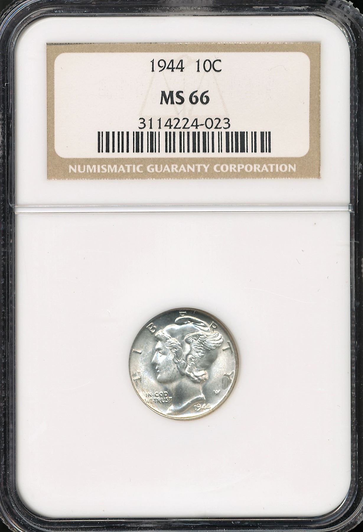 U.S. 1944 Mercury Dime NGC MS66. Beautiful High grade example!