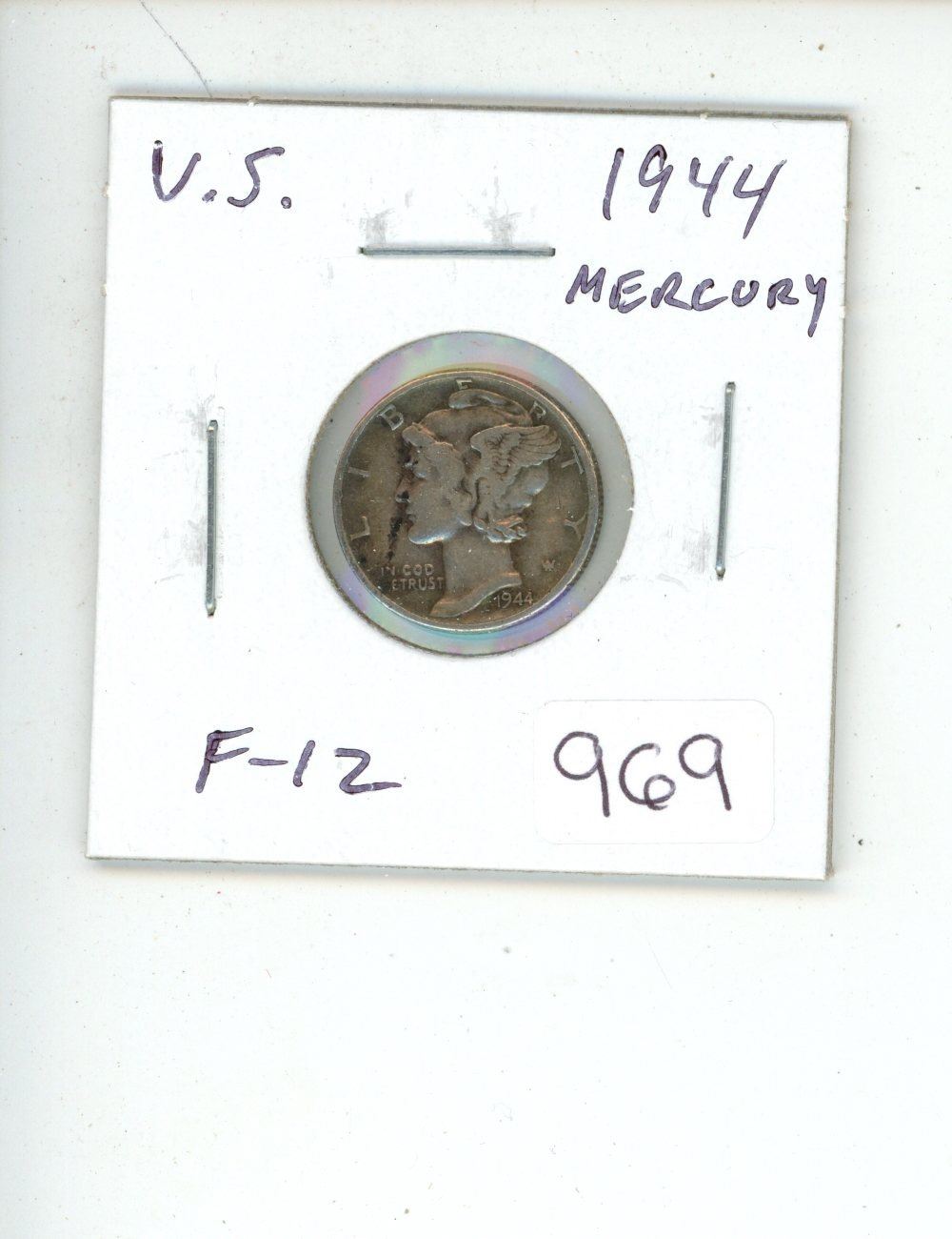 U.S. 1944 Mercury Silver Dime. Philadelphia Mint. F-12.