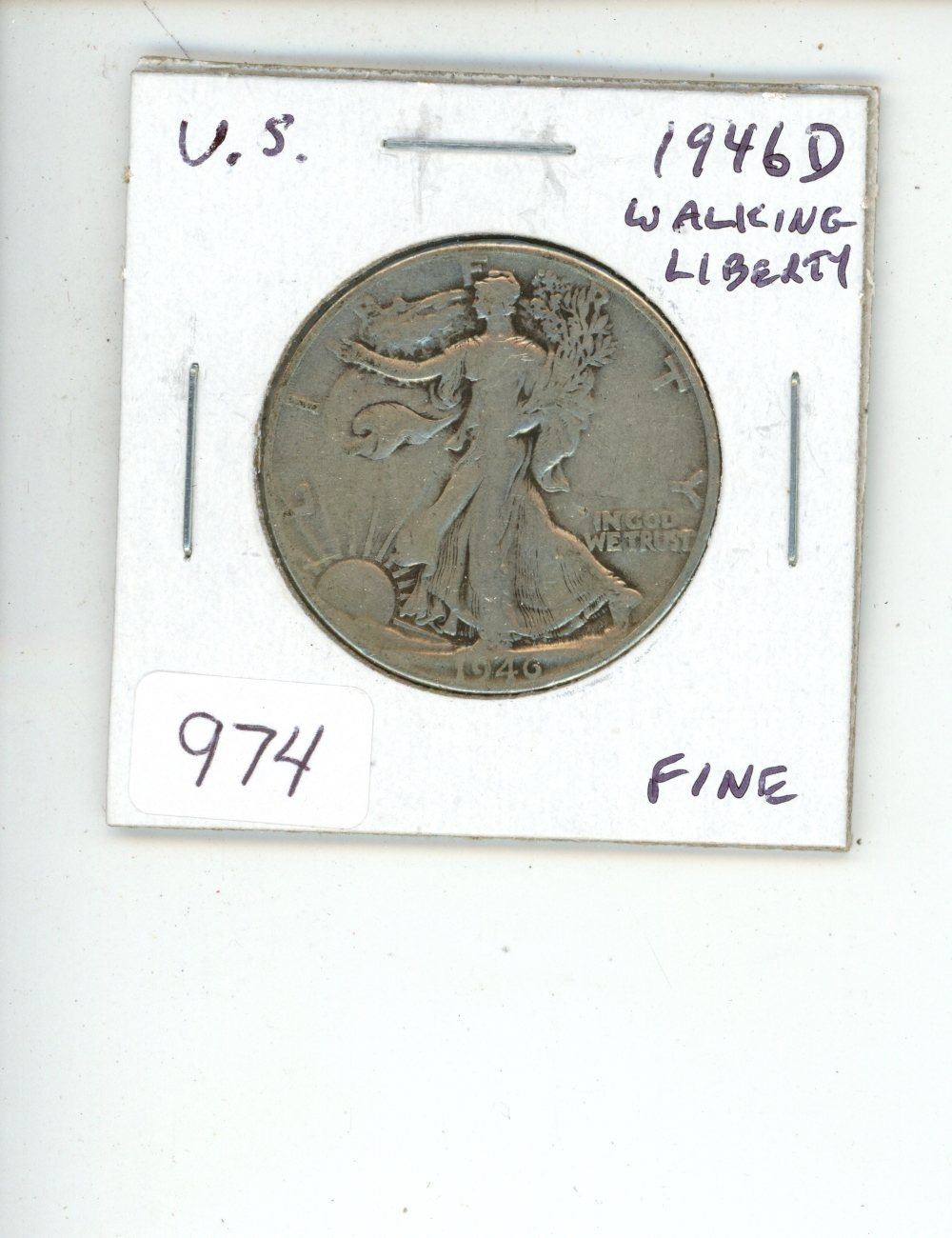 U.S. 1946D Walking Liberty Silver Half Dollar. Denver Mint. Fine.