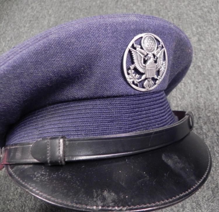 U.S. 1950'S COMPLETE AIR FORCE UNIFORM-COAT, 2 PANTS, VISOR HAT-SIZE COAT 43R * ALL IN GOOD CONDITION-TAILORS LABEL IN COAT *