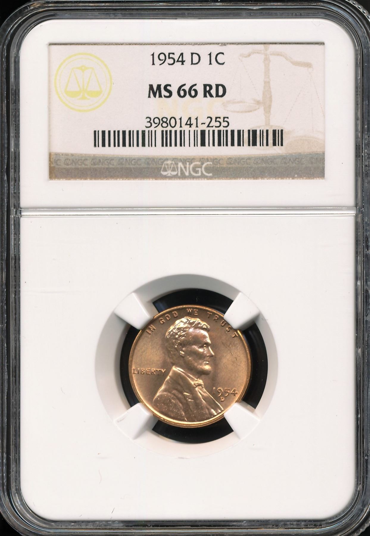 This 1954-D Lincoln Cent has been certified as MS66 (Red) by NGC, one of the top two coin grading services.