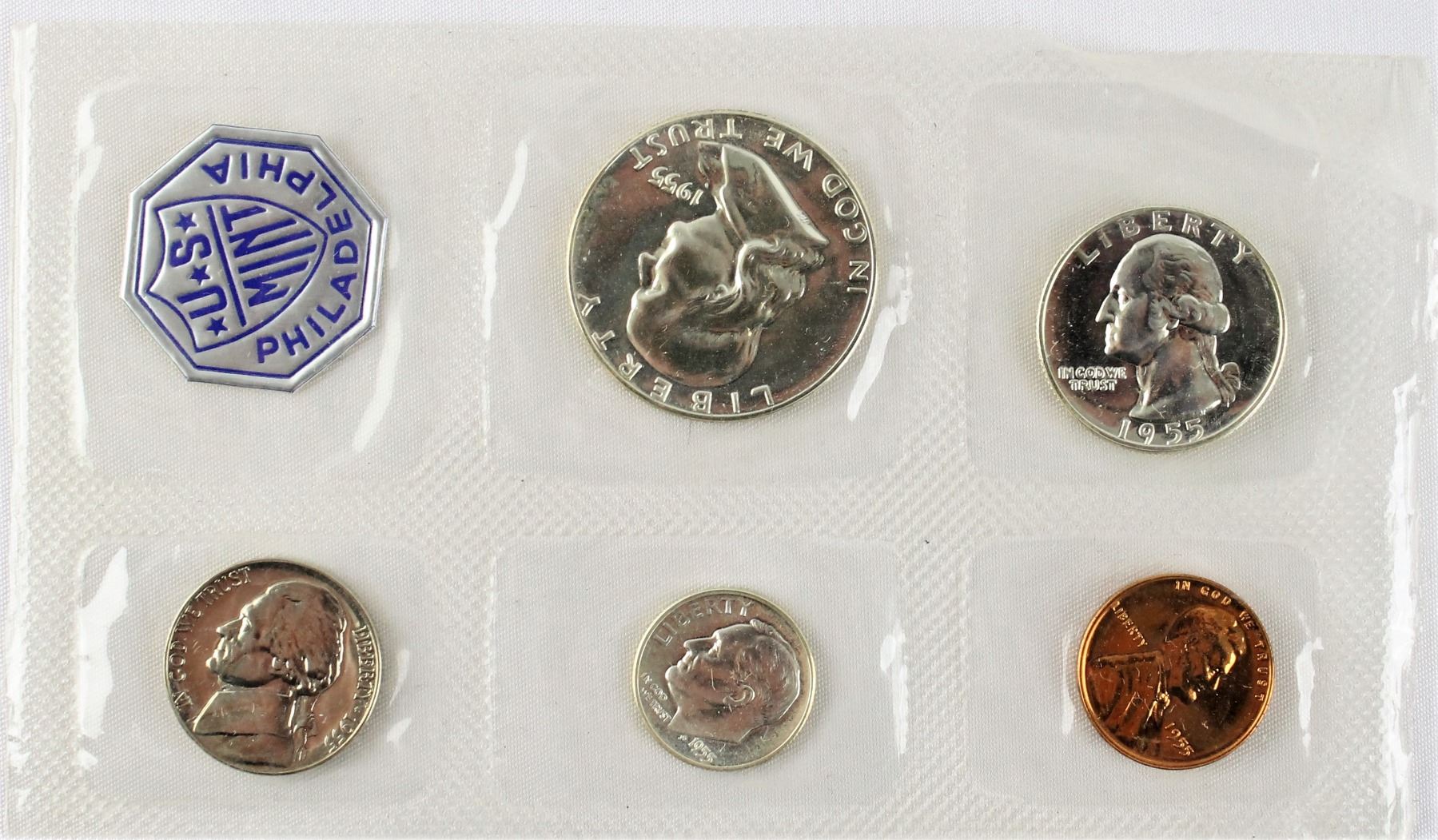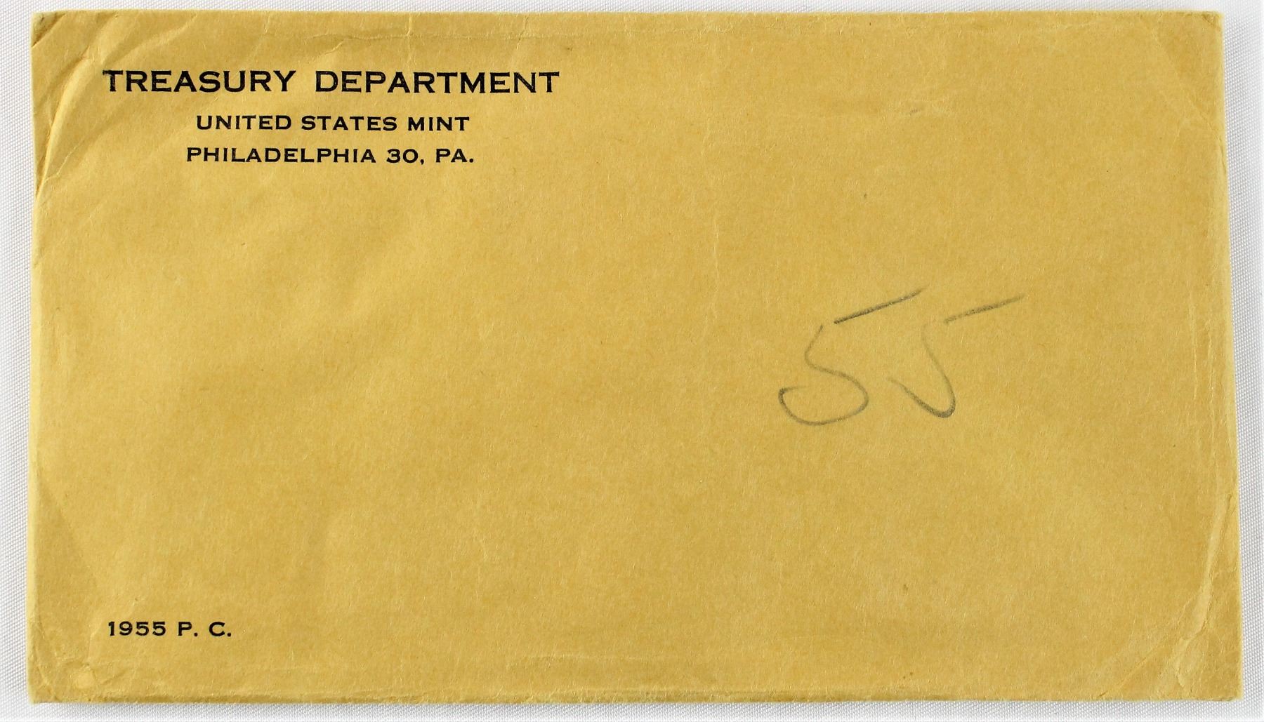 Offered here in its original flat-pack format, 1955 is the first year that Proof coins were packaged as a set, rather than in individual cellophane sleeves. Mirror-like proof finish adds further beauty to these classic designs.