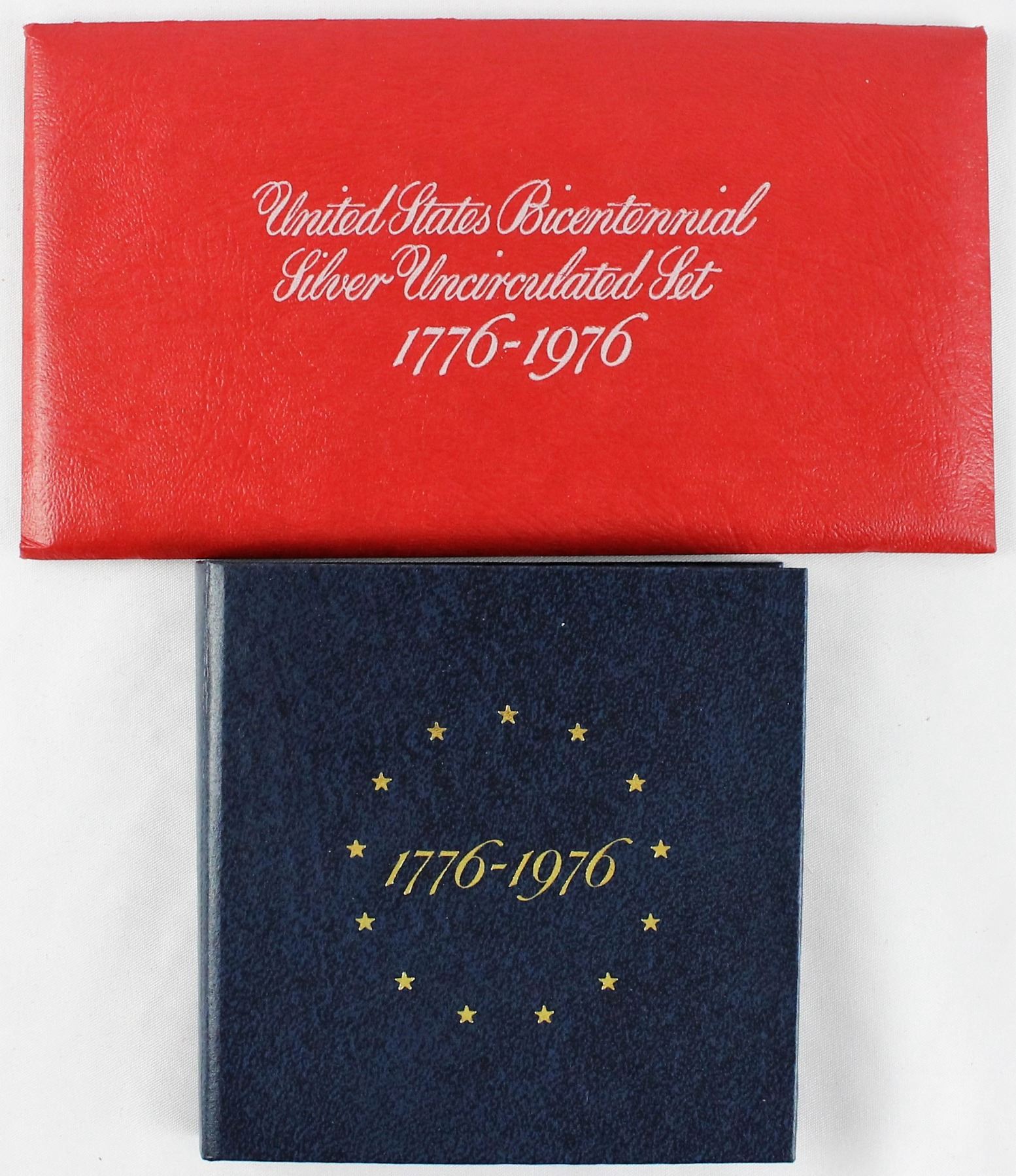 These three-coin sets contains proof and business strike examples of the Bicentennial design quarter, half dollar and dollar, struck in 40% Silver.
