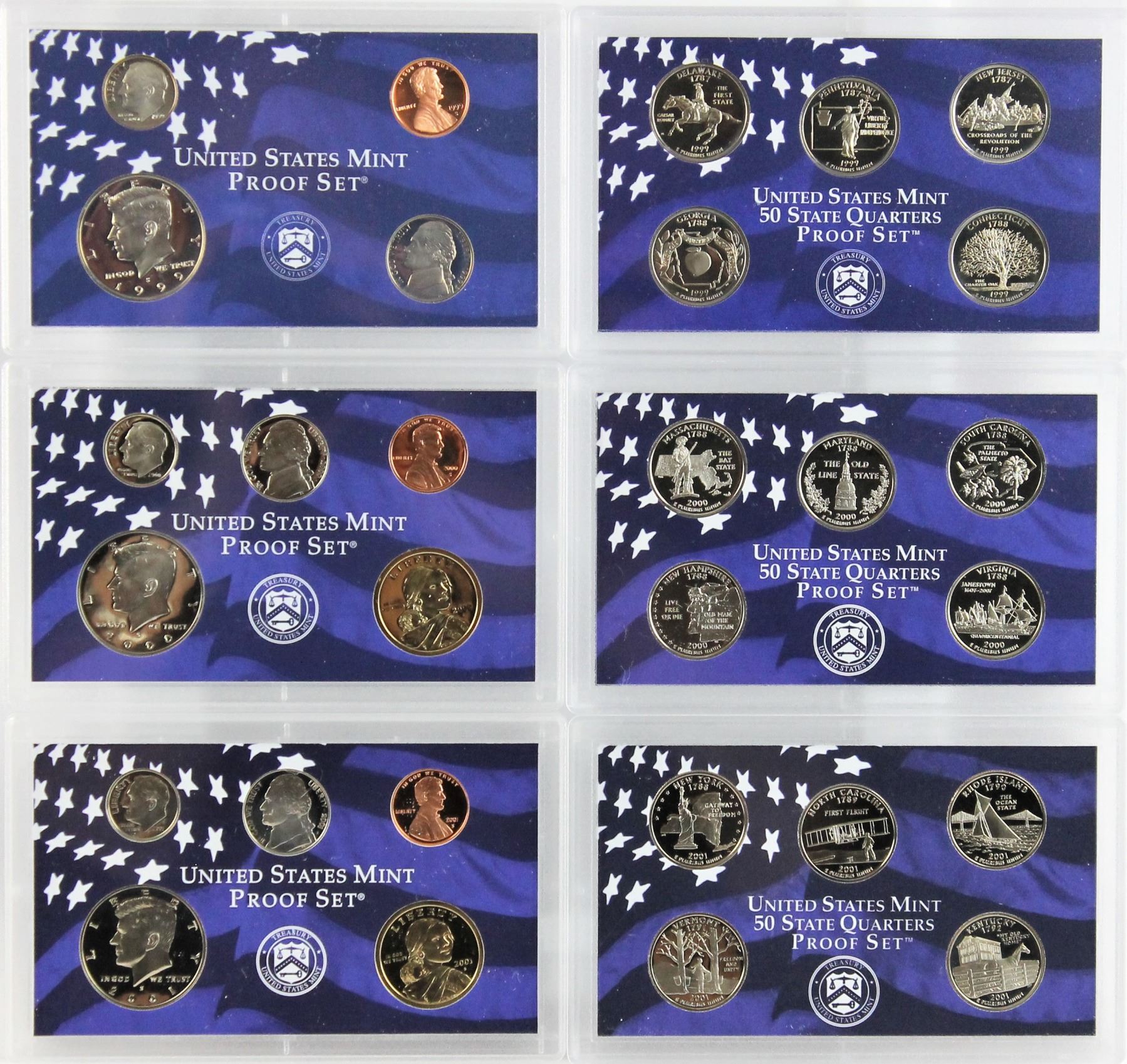 These 9-piece sets includes a half dollar, dime, nickel, and cent, as well as the first five releases of the popular Statehood Quarter Series - all in a beautiful proof finish!