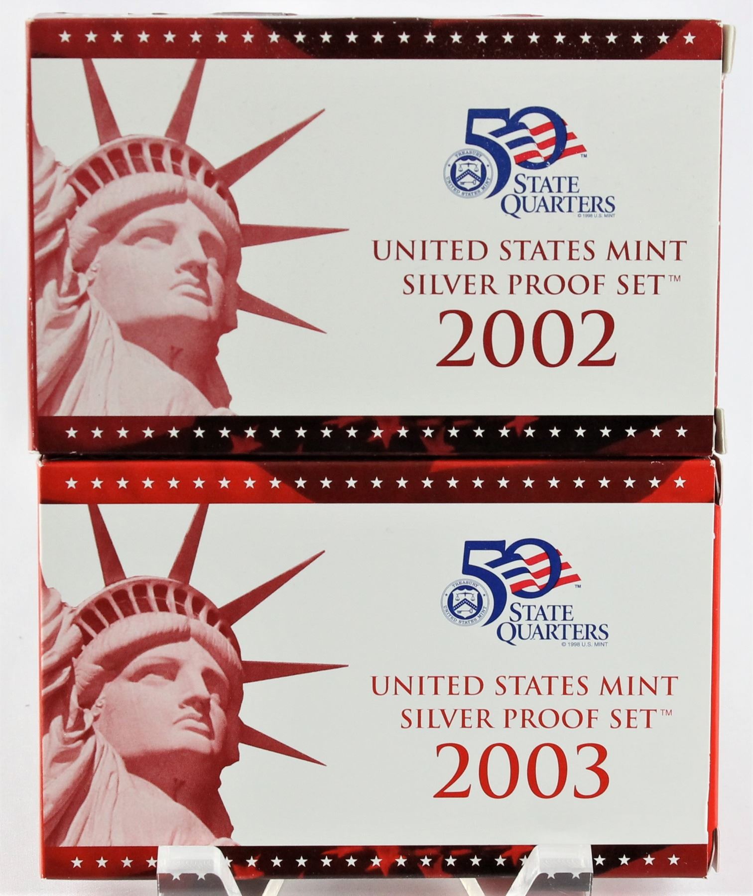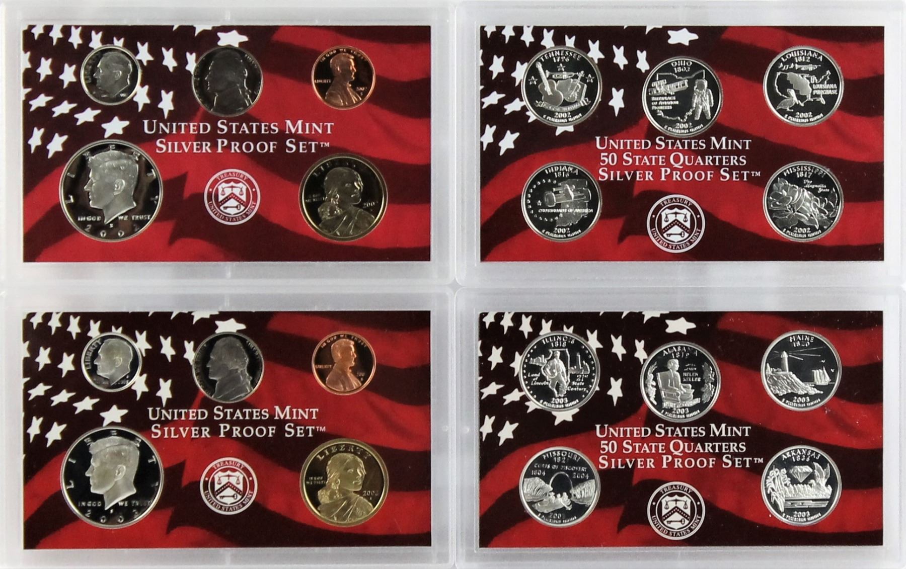 These 10-piece sets includes a dollar, half dollar, dime, nickel, and cent, as well as the releases of the popular Statehood Quarter Series, all in a beautiful proof finish. The half dollar, dime and quarters are all minted in 90% Silver.