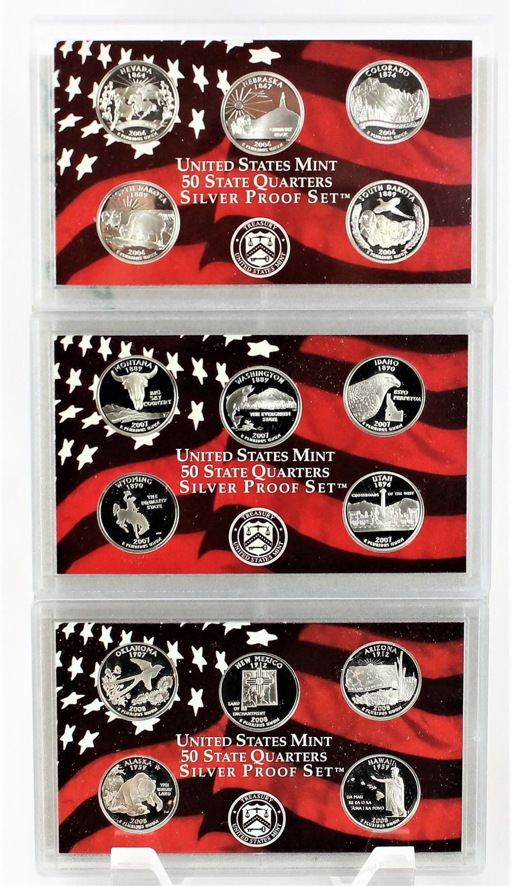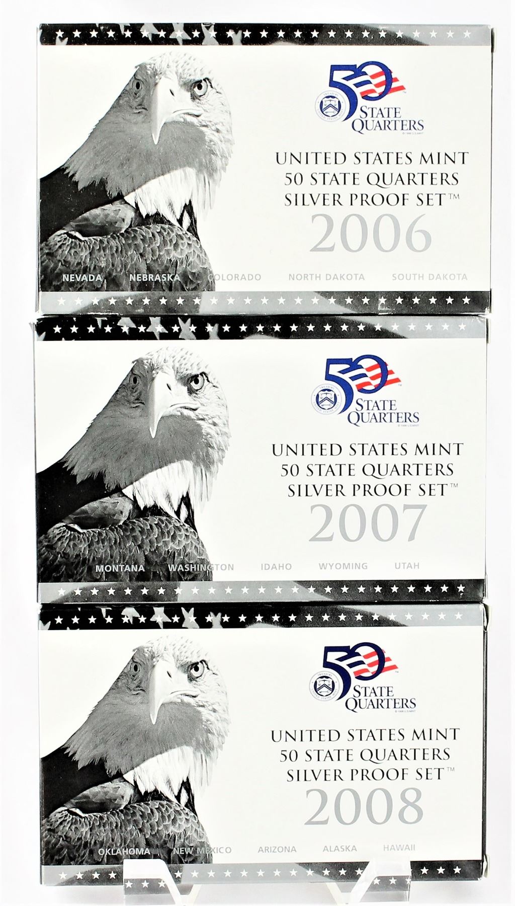 U.S. 2006, 2007 & 2008 50 States Quarters Silver Proof Sets