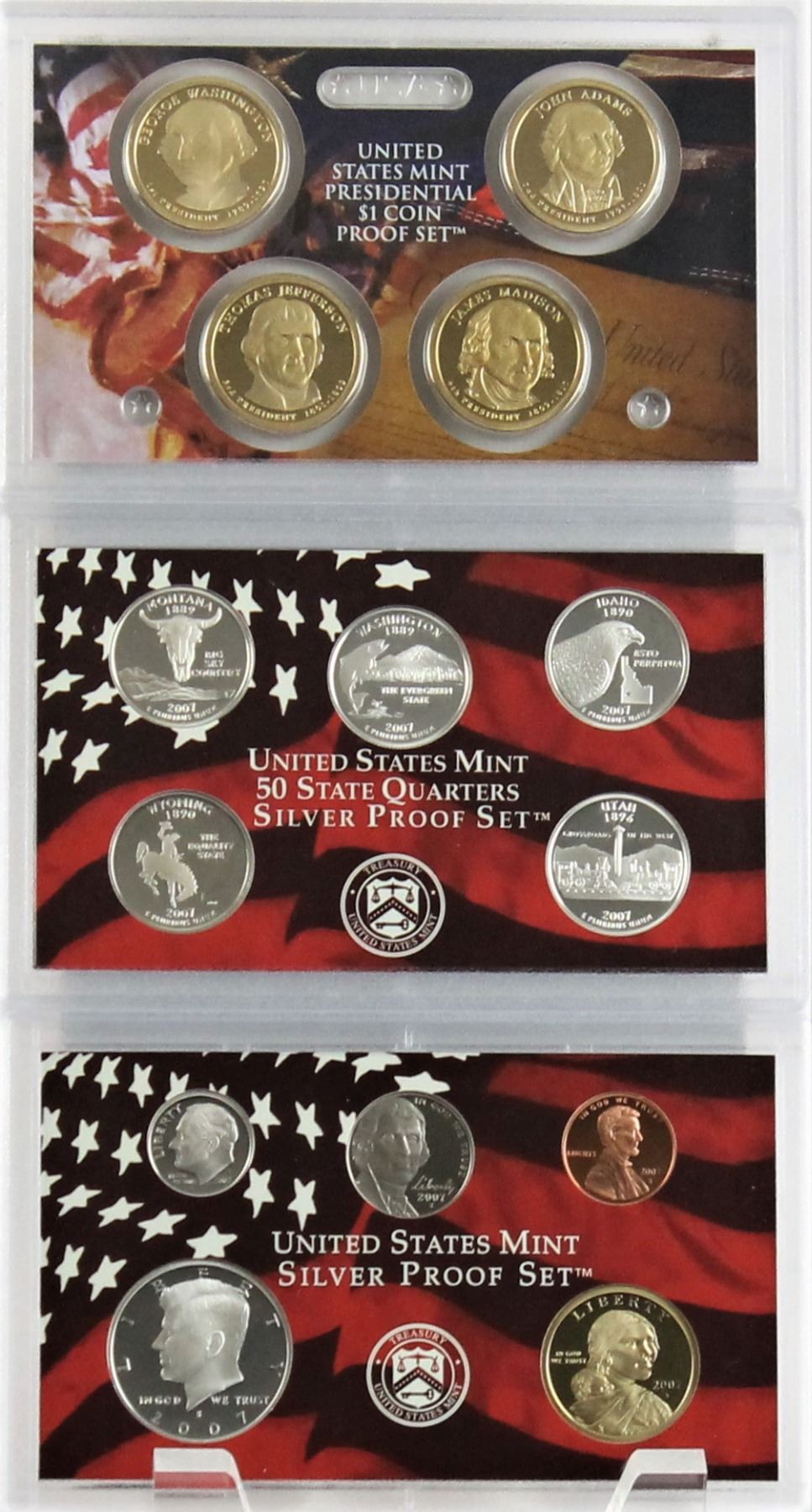 This 14-piece set includes a half dollar, dime, nickel, and cent, the 2007 Statehood Quarters, and the first four coins of the Presidential Dollar series all in a beautiful proof finish. The half dollar, dime and quarters are minted in 90% Silver.