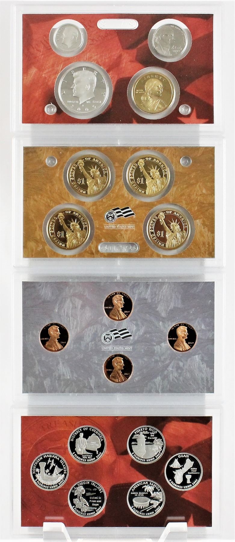 This 18-piece set includes a half dollar, dime, nickel, six quarters, four Presidential Dollars and the four Lincoln Bicentennial cents - all in beautiful proof finish! The half dollar, dime and quarters are minted in 90% Silver.