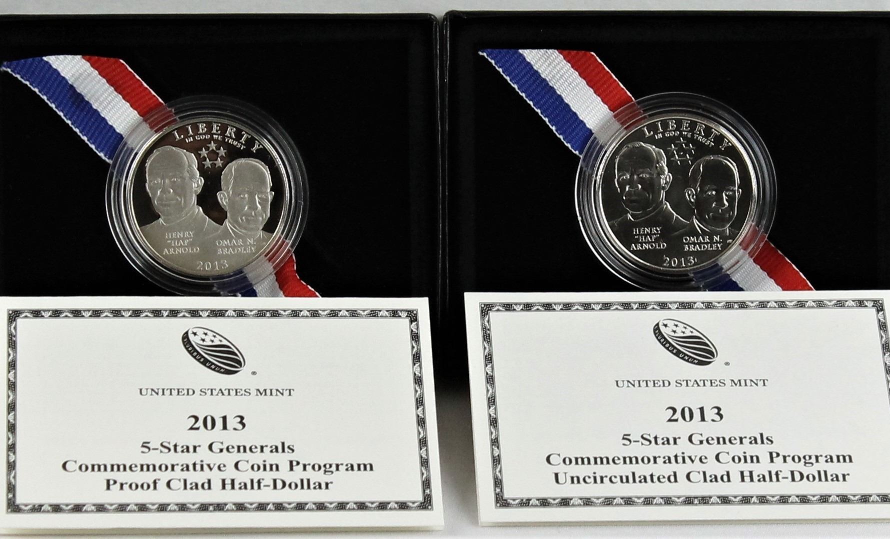 U.S. 2013-S & D 5-Star Generals 50¢ Commems Proof & Business Strike W/Box & COA.