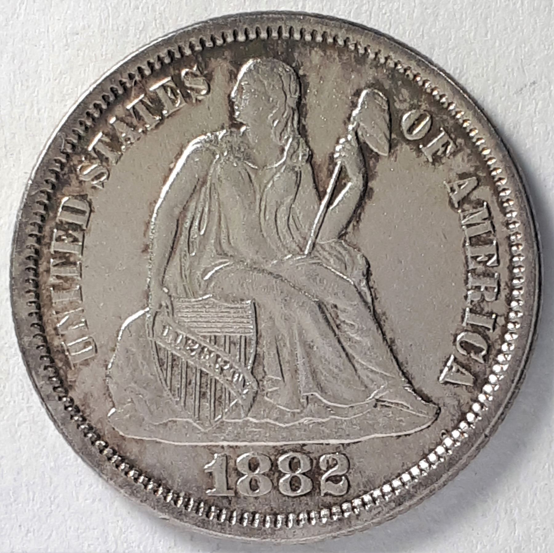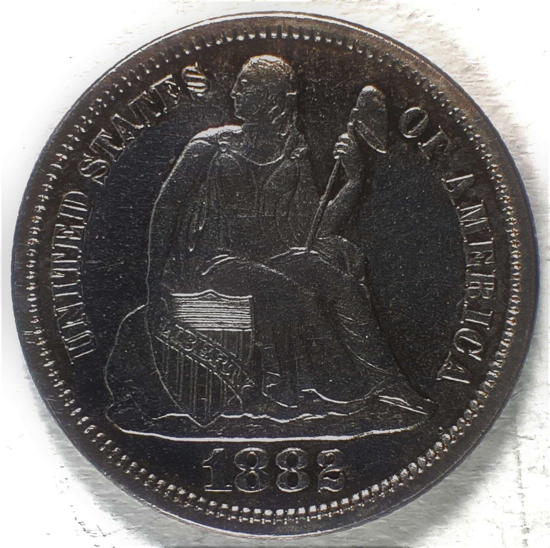 U.S.A. 0.10c DIME 1882 in XF/AU Patina