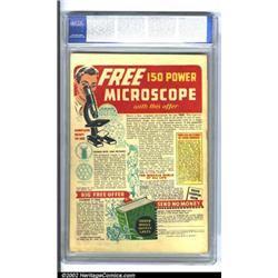 U.S.A Comics #10 (Timely, 1943) CGC FN- 5.5 Tan to off-white pages. Captain America is eliminating the Japanese threat on this wartime Alex Schomburg cover. This book has an almost perfect spine and tight staples. The Thunderbird makes his only appearance in this issue. A solid book, with no major defects. Overstreet 2002 FN 6.0 value = $573. Important notice: We expect to be auctioning lots at the rate of 200-250 per hour. Sometimes eBay Premier live bid software cannot keep up with that pace, so we strongly recommend that you place a realistic proxy bid now as insurance to avoid disappointment. Also please note that all Heritage/CAA lots purchased through eBay Premier carry a 20% Buyer's Premium.