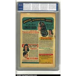 U.S.A Comics #16 (Timely, 1945) CGC FN- 5.5 Off-white pages. A great Captain America and Bucky action cover by Alex Schomburg. Clearly the girl in the boat is tied up, so this is a bondage cover as well. This is the tough second-to-last issue of this title. Overstreet 2002 FN 6.0 value = $327. Important notice: We expect to be auctioning lots at the rate of 200-250 per hour. Sometimes eBay Premier live bid software cannot keep up with that pace, so we strongly recommend that you place a realistic proxy bid now as insurance to avoid disappointment. Also please note that all Heritage/CAA lots purchased through eBay Premier carry a 20% Buyer's Premium.