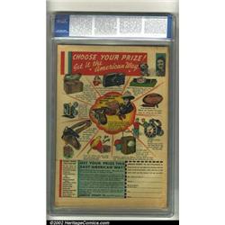 U.S.A Comics #6 (Timely, 1942) CGC FN+ 6.5 Tan to off-white pages. Captain America and Bucky appear on the cover, in a classic bondage scene. The torture and Nazi theme is played out to the utmost by Alex Schomburg. This memorable cover marks the first appearance of Captain America in this title, and the Destroyer, Jap Buster Johnson and Jeep Jones debut as well. Terror Squad makes their only appearance. This fantastic book has the look of a VF+, but for one small corner chip. Overstreet 2002 FN 6.0 value = $819. Important notice: We expect to be auctioning lots at the rate of 200-250 per hour. Sometimes eBay Premier live bid software cannot keep up with that pace, so we strongly recommend that you place a realistic proxy bid now as insurance to avoid disappointment. Also please note that all Heritage/CAA lots purchased through eBay Premier carry a 20% Buyer's Premium.