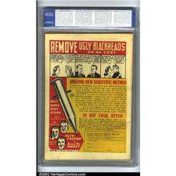 U.S.A Comics #9 (Timely, 1943) CGC VF- 7.5 Light tan to off-white pages. Hitler appears in the background of this classic bondage cover by Syd Shores. The Nazi ghoul has a hypodermic needle full of paralyzing serum, getting ready to inject Bucky. Captain America makes a cover appearance, and dominates the book. This is an extremely nice-looking book, with a strong and straight spine. Overstreet 2002 VF 8.0 value = $1,281. Important notice: We expect to be auctioning lots at the rate of 200-250 per hour. Sometimes eBay Premier live bid software cannot keep up with that pace, so we strongly recommend that you place a realistic proxy bid now as insurance to avoid disappointment. Also please note that all Heritage/CAA lots purchased through eBay Premier carry a 20% Buyer's Premium.